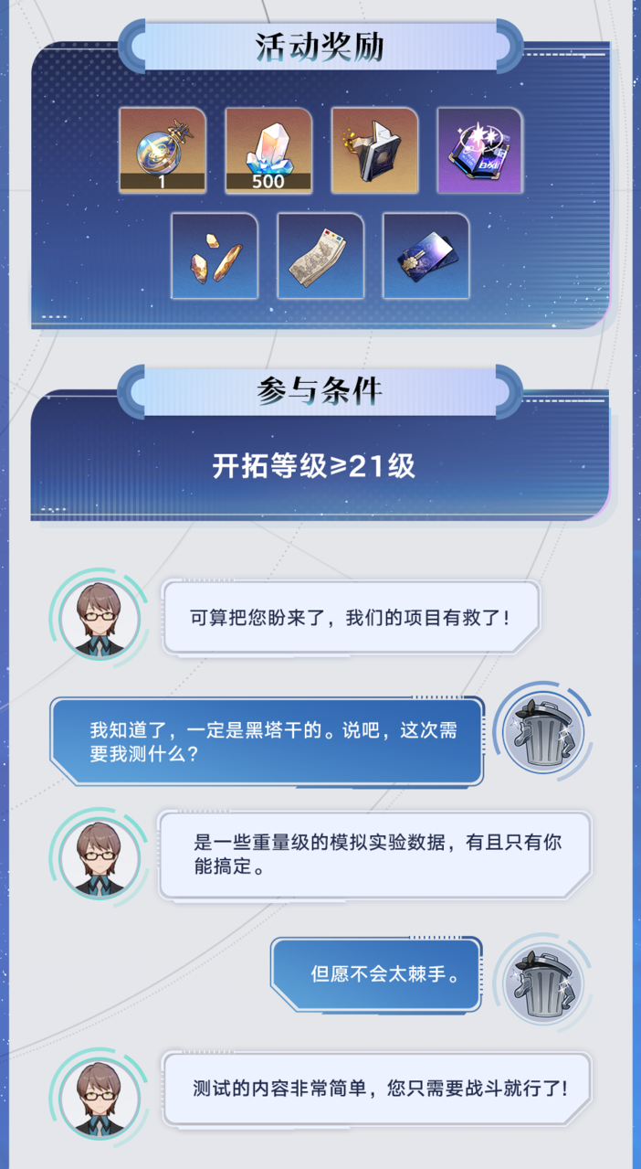 空间站的科员又在捣鼓什么神秘实验?听闻这次有人指名要你参加,你总有种似曾相识的感觉,让你想起了某位懒得透露姓名的黑塔女士……