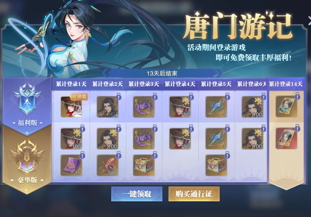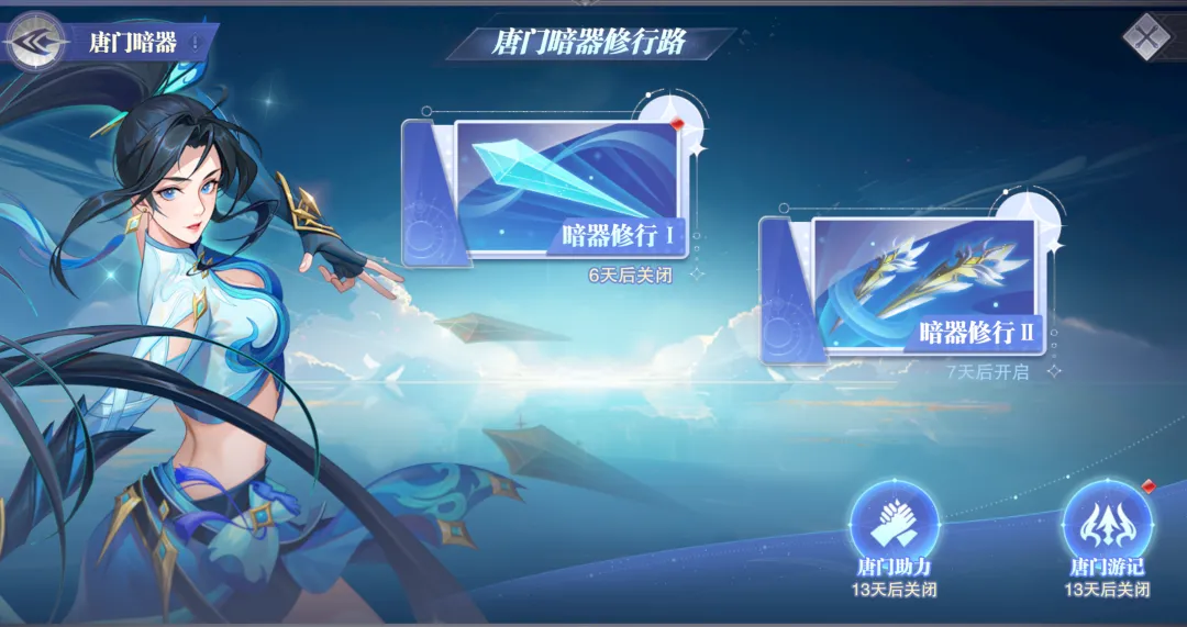 那么今天开启的唐门暗器活动可分为3个细分活动,其中唐门助力是每天1000体力的双倍掉落,而唐门游记则是一个类似于通行证类型的活动。