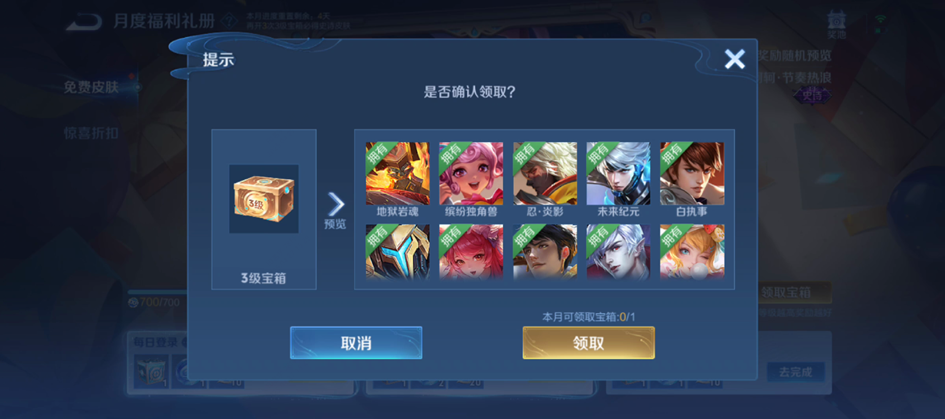 在领取宝箱时,还可以预览可能获得的奖励,方便大家查阅自己的奖励拥有情况。![]()