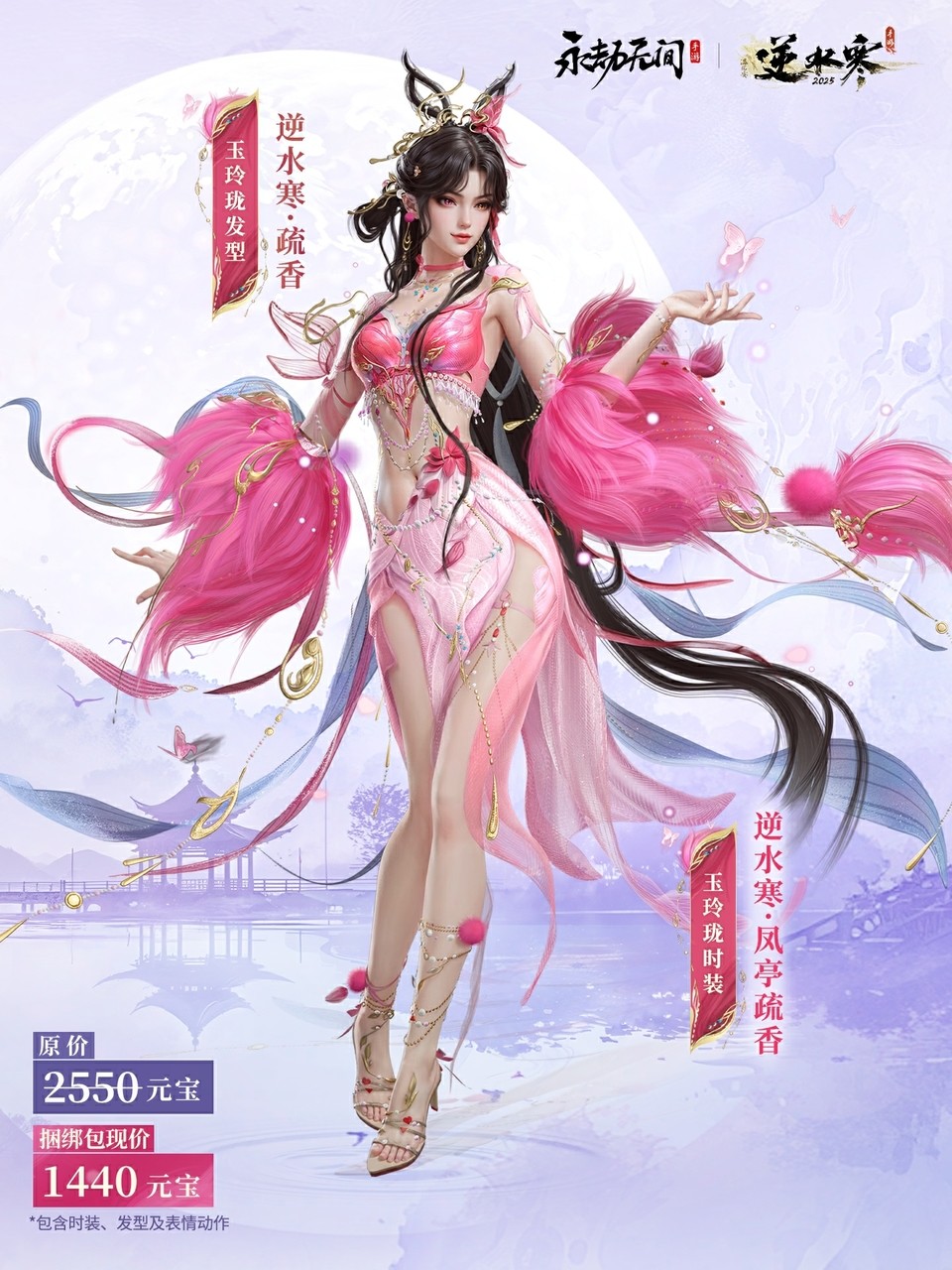 1、新增玉玲珑捆绑包【貂蝉捆绑包】。捆绑包内含玉玲珑极品时装【逆水寒·凤亭疏香】、玉玲珑极品发型【逆水寒·疏香】、玉玲珑极品表情动作【逆水寒·倚花期会】。捆绑包原价2550元宝,折扣价1440元宝。单独购买对应单品即可享受折扣,购买捆绑包将享受更多折扣。