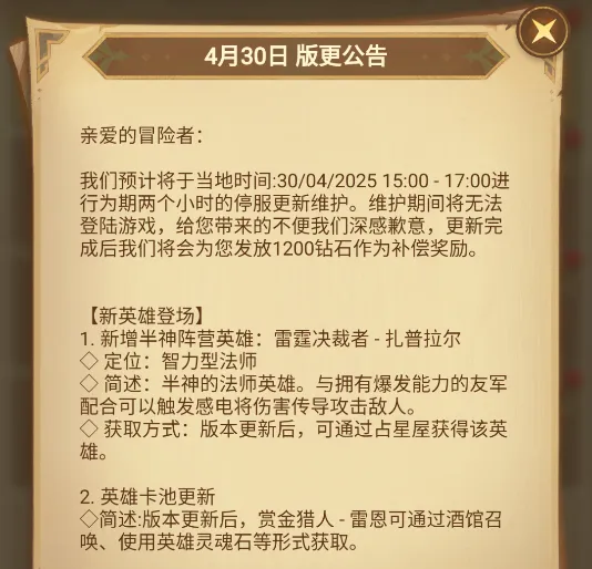 本次停服维护更新内容仅适用于《剑与远征》先锋服,版本实际更新内容请以正式服上线后为准。