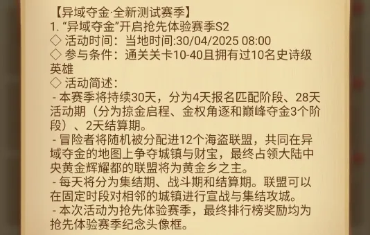 ◇活动介绍:冒险者通关关卡15-40后可报名参与,本次开启将有以下调整: