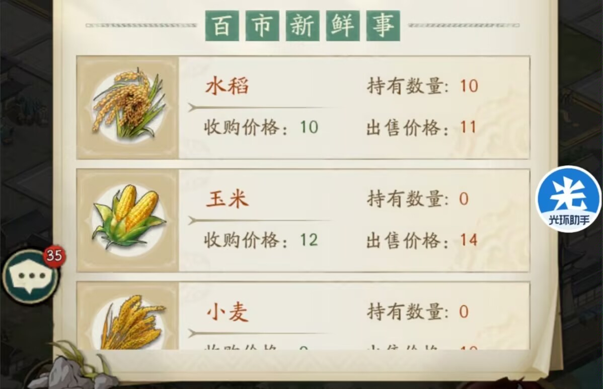 这三种商铺每天的价格也不一样!都会在24点刷新,商铺买东西得先观察市场,优先买收益最高的那个,这样我们获得的银锭也更多,后面狮子会详细说。