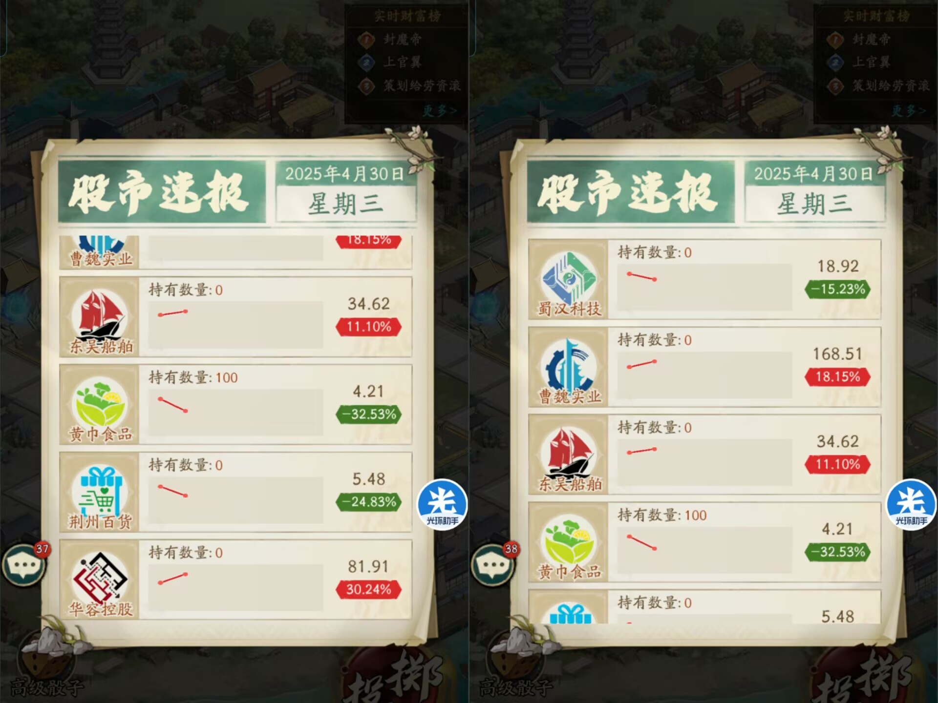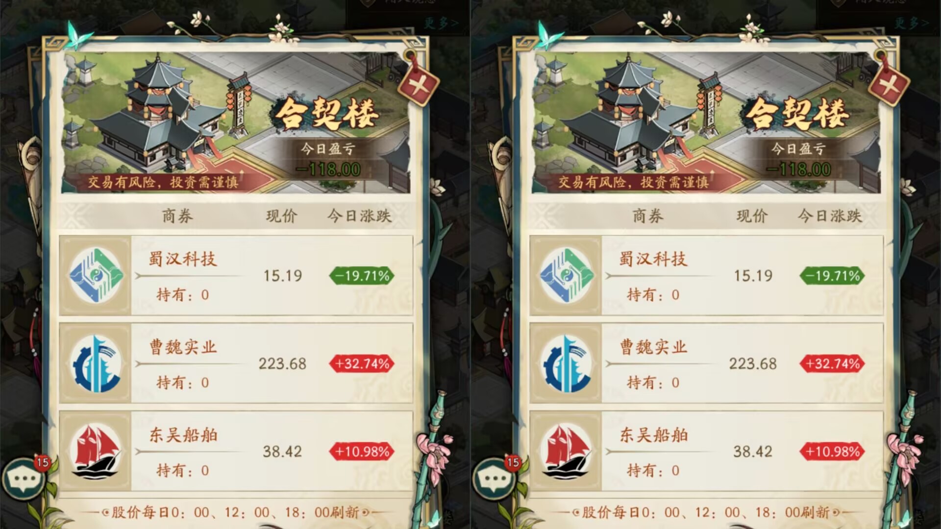股市上面也说了,每天会刷新三次,所以股市也是获得【银锭】速度最快的地方,也是拉开和其他玩家银锭差距的主要地方。