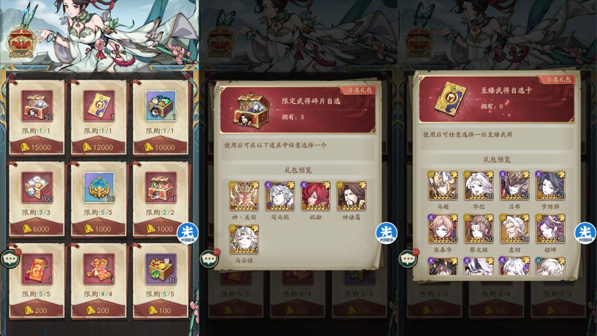 ①优先兑换:限定武将自选(可以拿司马懿 祝融 马云禄 神诸葛 神关羽)