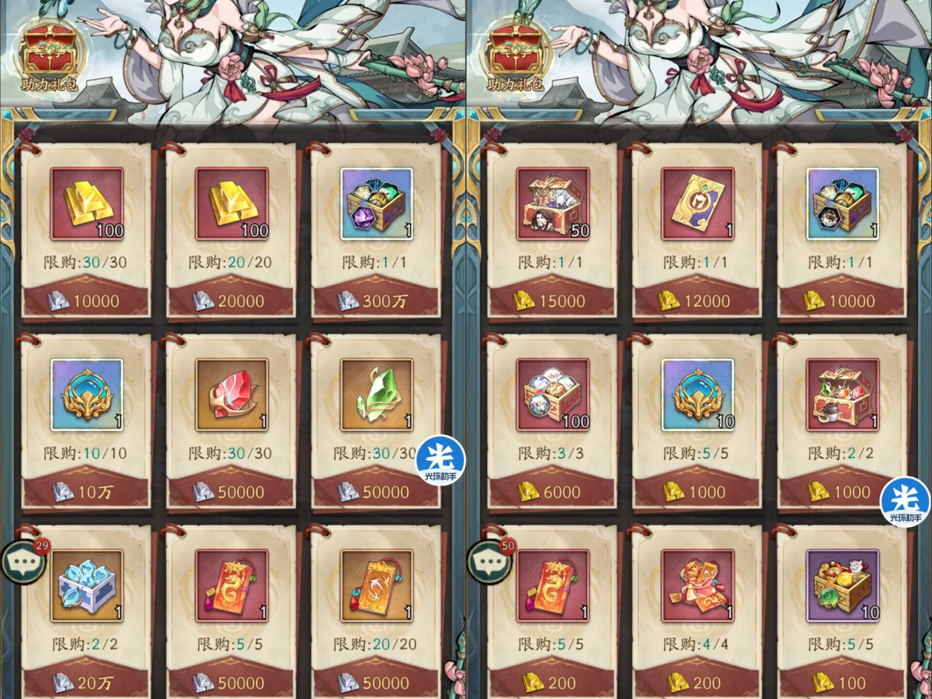 五:【江湖百市】活动兑换商店。商店分为:银锭商店和金锭商店。