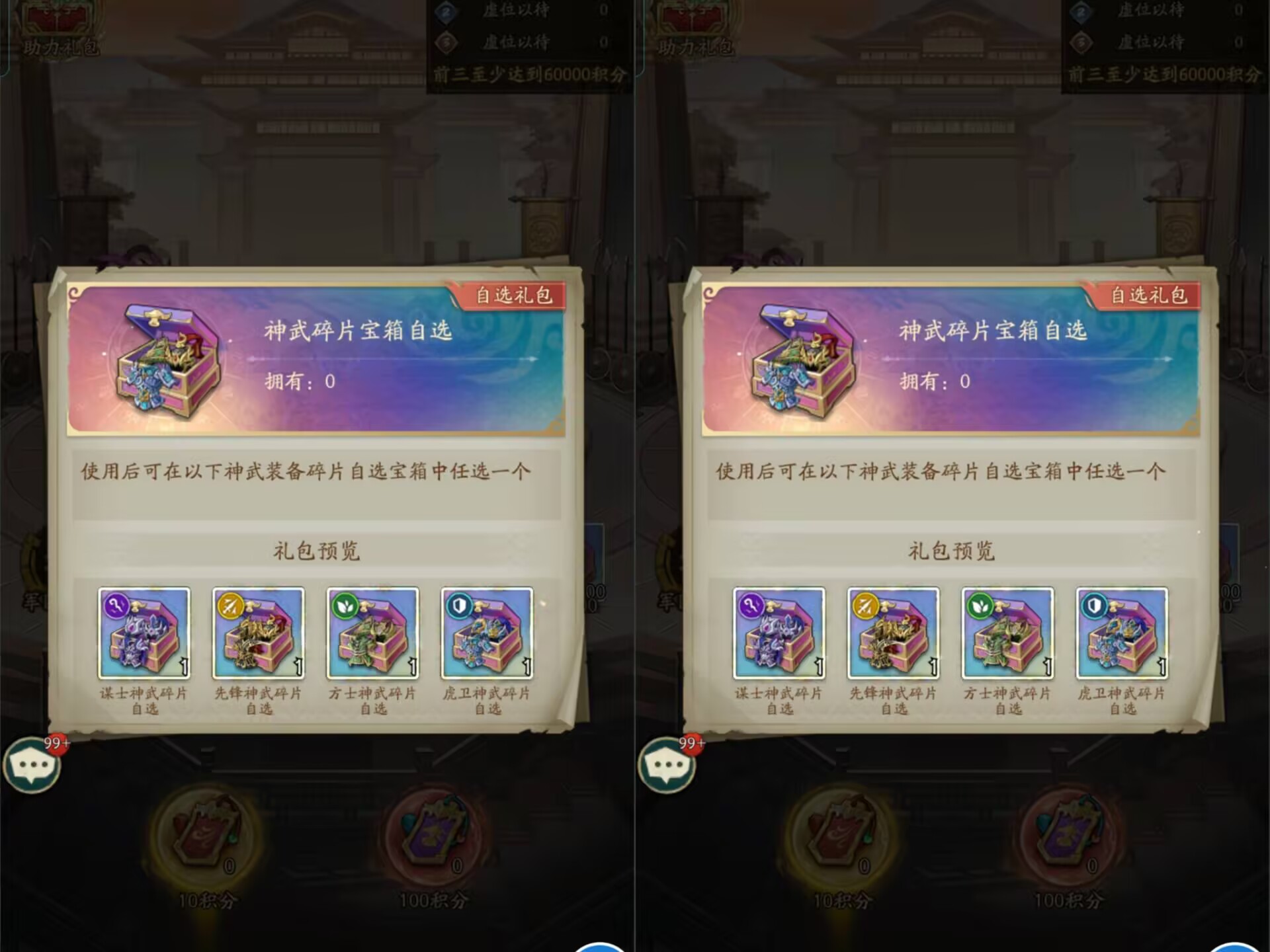 ①优先兑换:7级双属性宝石、神武碎片宝箱自选。