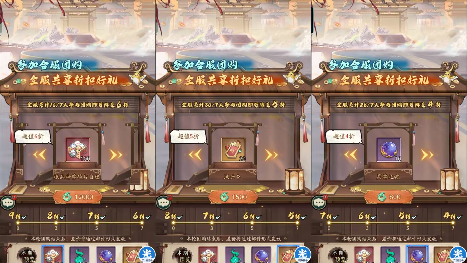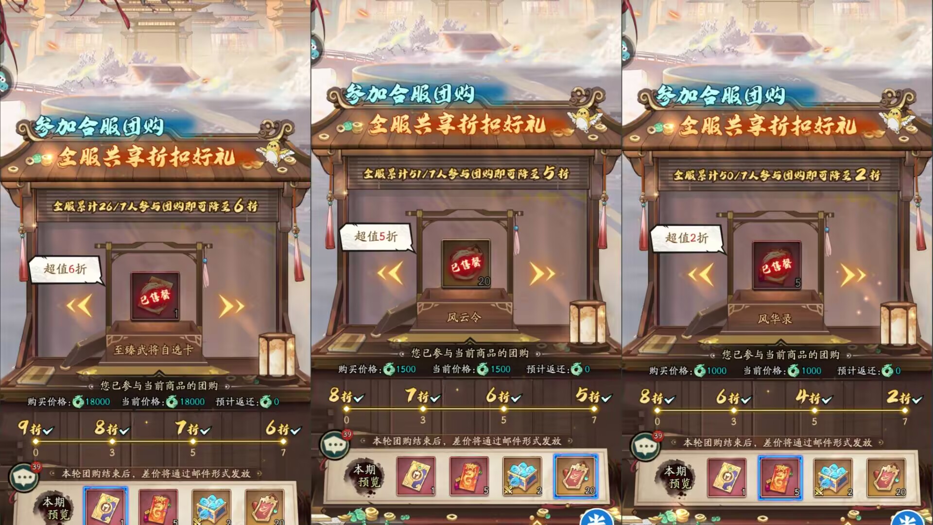 这里是合服团购,性价比很高,每个物品达到固定购买人物都会享受丰厚的折扣,所以狮子是很推荐需要的资源去买就行了,