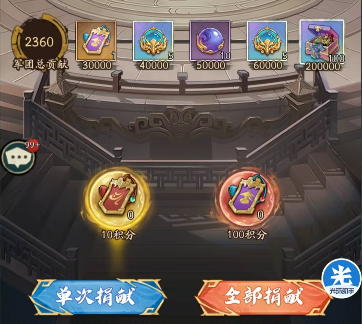 假设:一个军团50个人都是活人的话,就是200×50=10000积分。