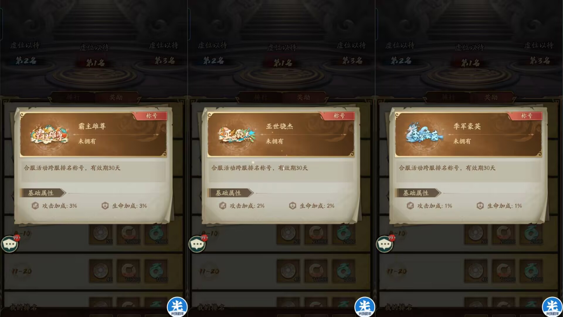 ②跨服排名:除了可以获得大量的珍宝币,前三名还可以获得专属称号。