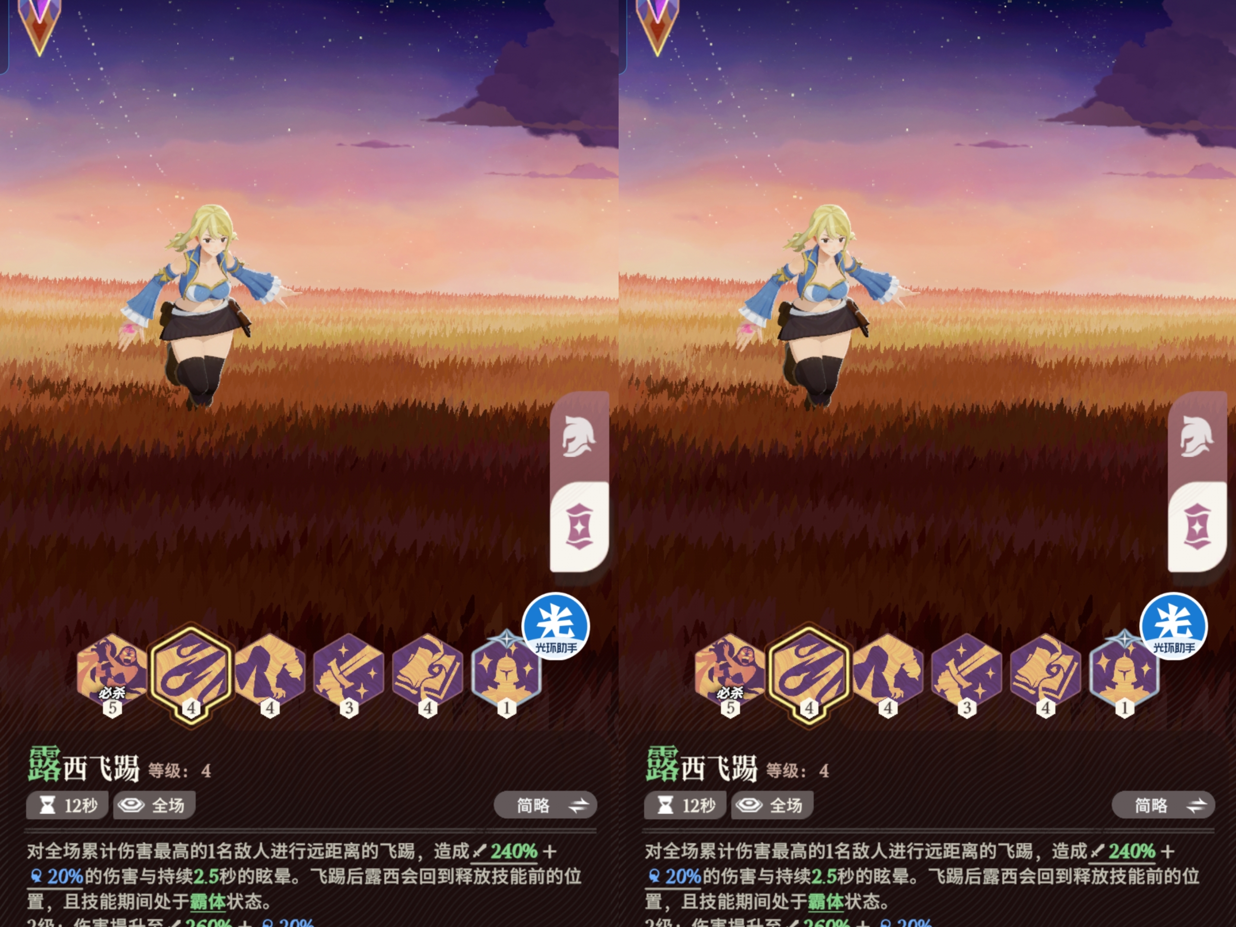 ①针对敌方主c的一个飞踢伤害,造成伤害同时眩晕其2.5秒。最大伤害可以造成300%+20%倍率的伤害。