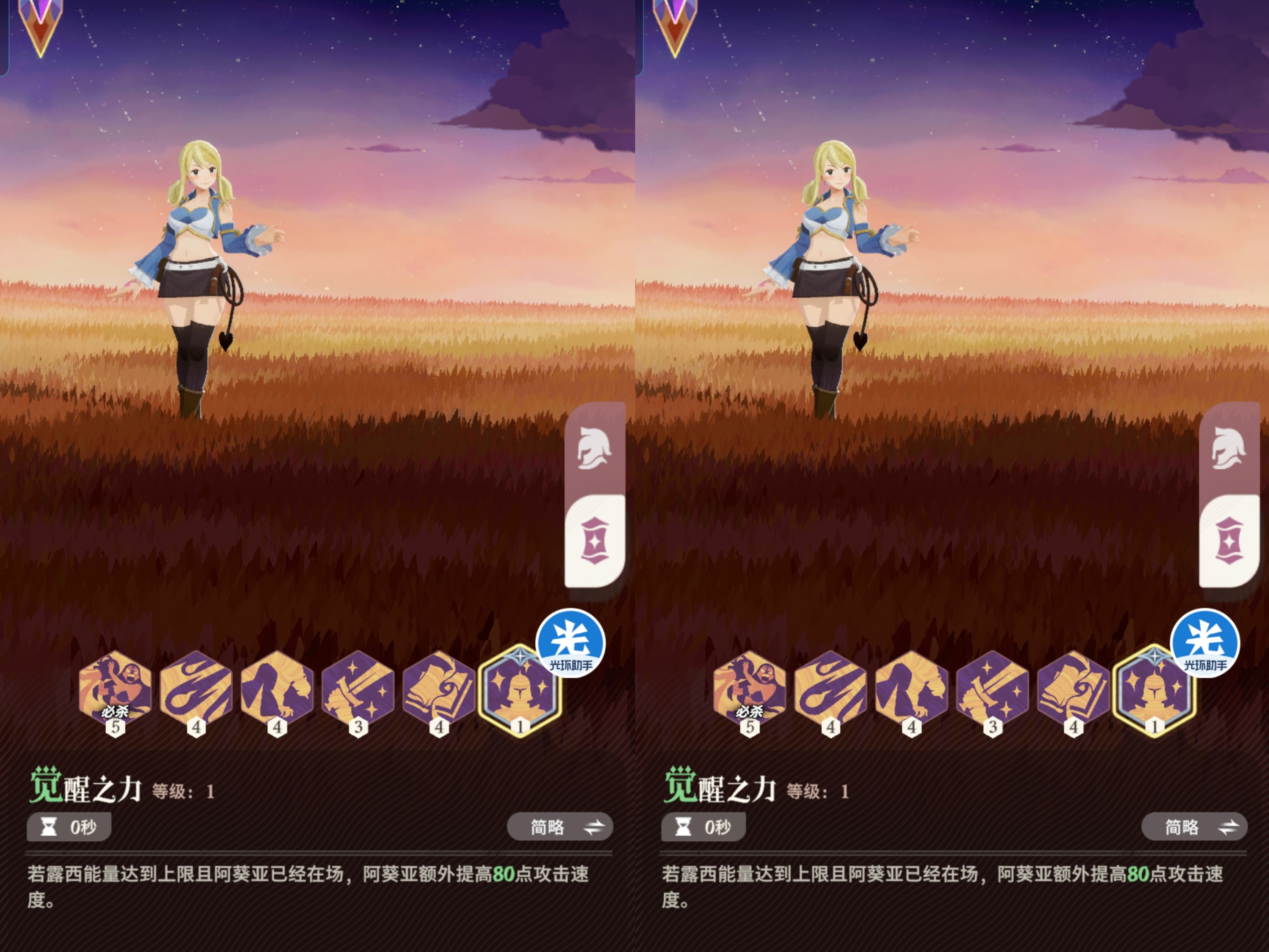 总结:露西的大招启动非常快,而且还有控制效果,这点在pvp中会比较有优势!但是技能倍率和纳兹比起来低很多,而且没有真伤、流血固伤等手段在推图和迷梦中表现比较差。