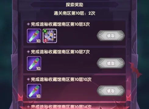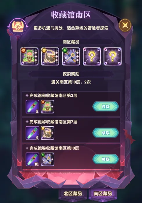 -“快速探索”南区解锁条件:诡秘收藏馆任意展区累计通关10层达到5次。