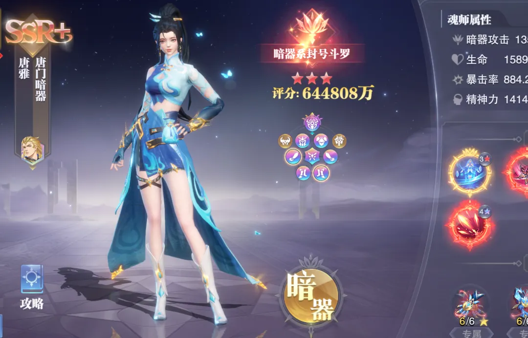 那么这里还是先来说下SSR+唐雅到底能干点啥,目前测下来维一个人认为,唐雅在长图增伤方面无疑是具备较强实力的,而在暗器副本方面能不能作为主C来用嘛......我个人现在持保留态度,因为经过对比测试在常规的悬赏暗器副本中,唐雅作为主C的伤害和什么SP冰帝、SP唐舞桐之辈对比,依然可谓是不值一提......当然即使把唐雅给塞到原来的暗器队当中,也是这么个情况,而且三位暗器魂师上场还会遇到个尴尬的问题,那便是以当前版本的暗器配置来讲,SP暗器的数量都跟不上......