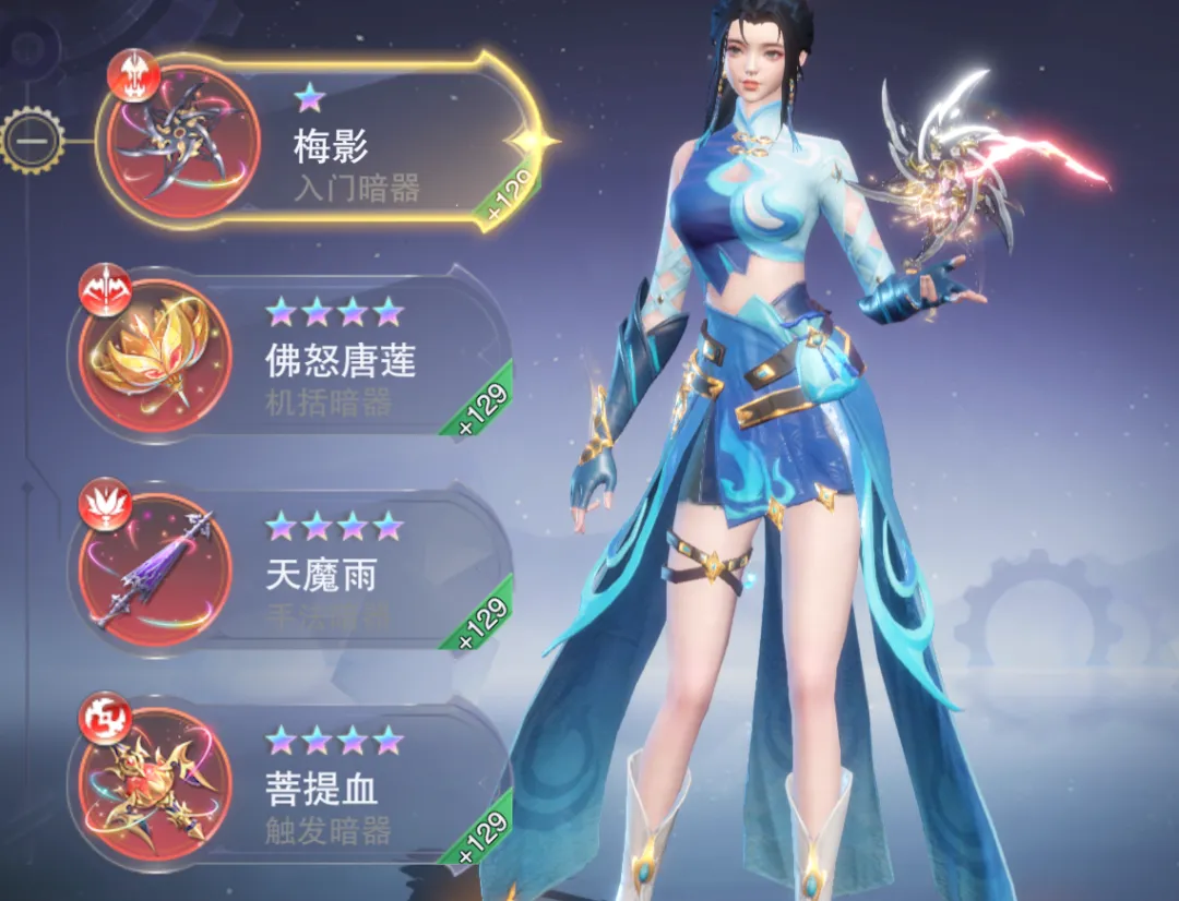 接着暗器唐雅的暗器配置嘛主要就是考虑“天魔雨”和“菩提血”即可,其它的相对也不是那么绝对。