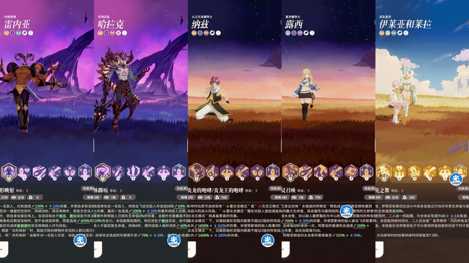 解析:这套和狮子上面说的普通竞技场搭配是一样的!思路也是一样的!整体来说露西配合纳兹说不上是完美的协同作战,但是露西的保命效果和死亡给纳兹加暴击,也算是个不错组合但是整体的强度也只能给到T2。