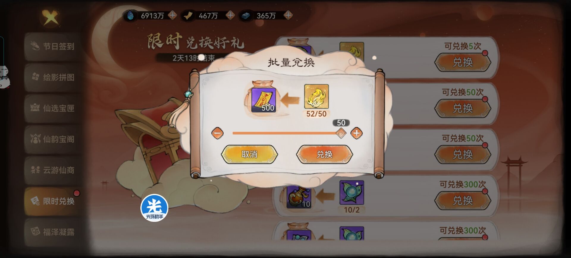 ②仙缘商店:每周可以兑换200张。