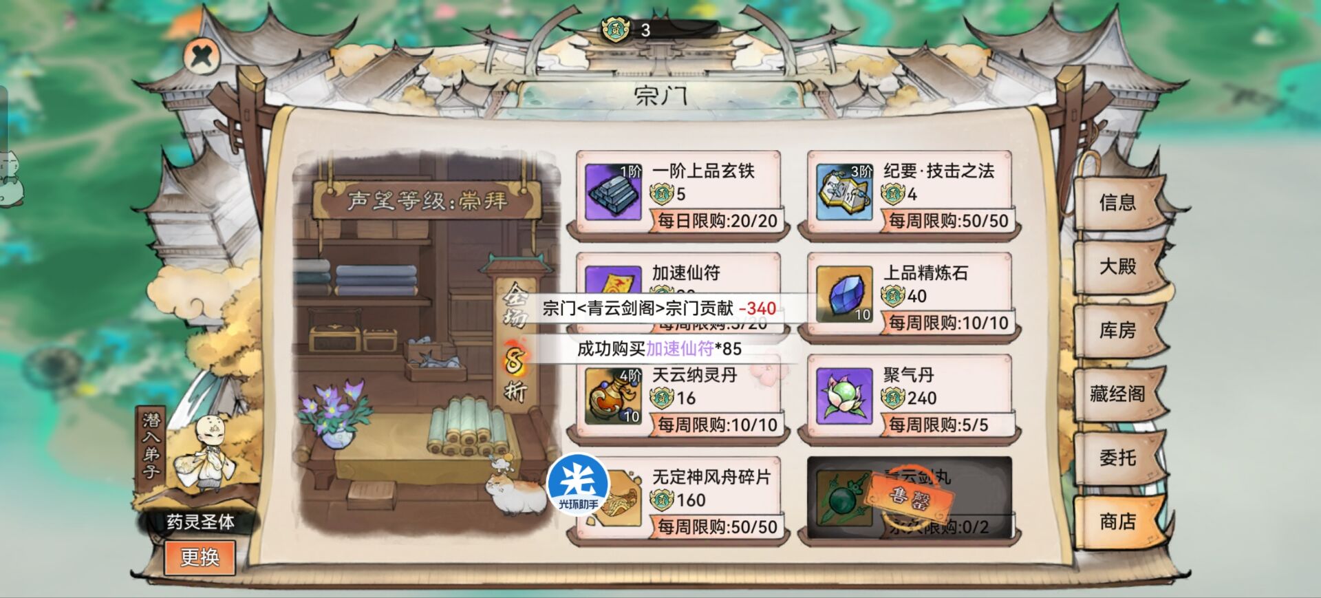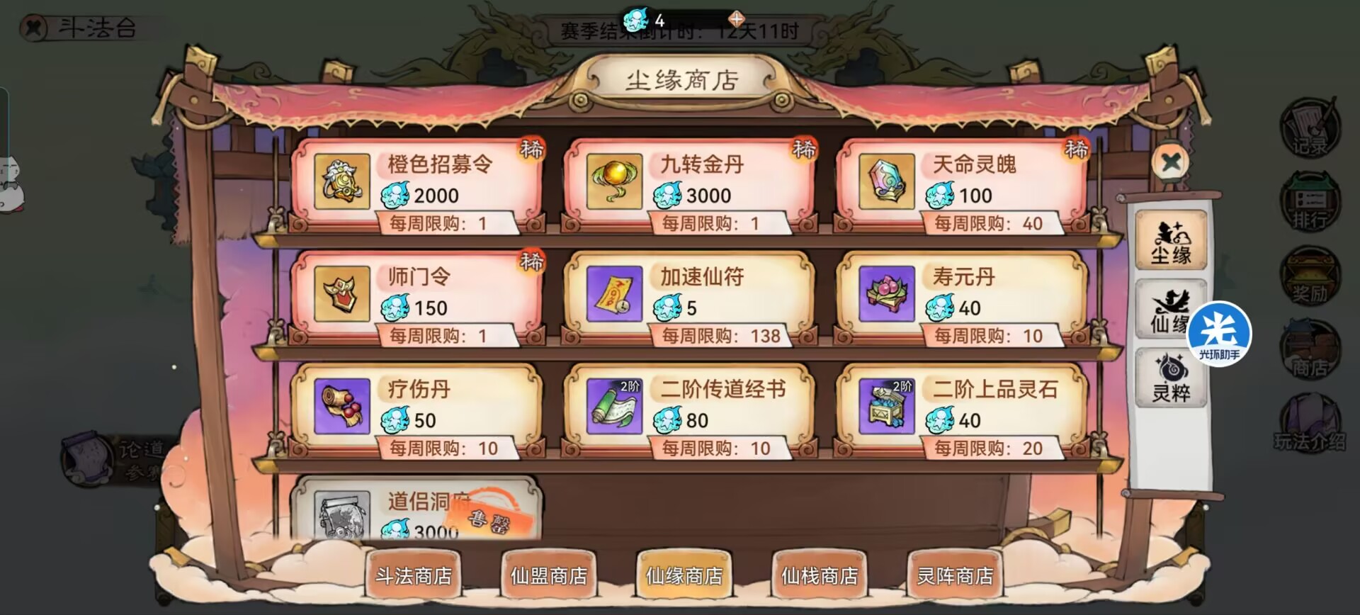 然后活动商店灵玉可以购买接近2000张的加速符,如果是灵玉不多的玩家这里的加速符不建议买。