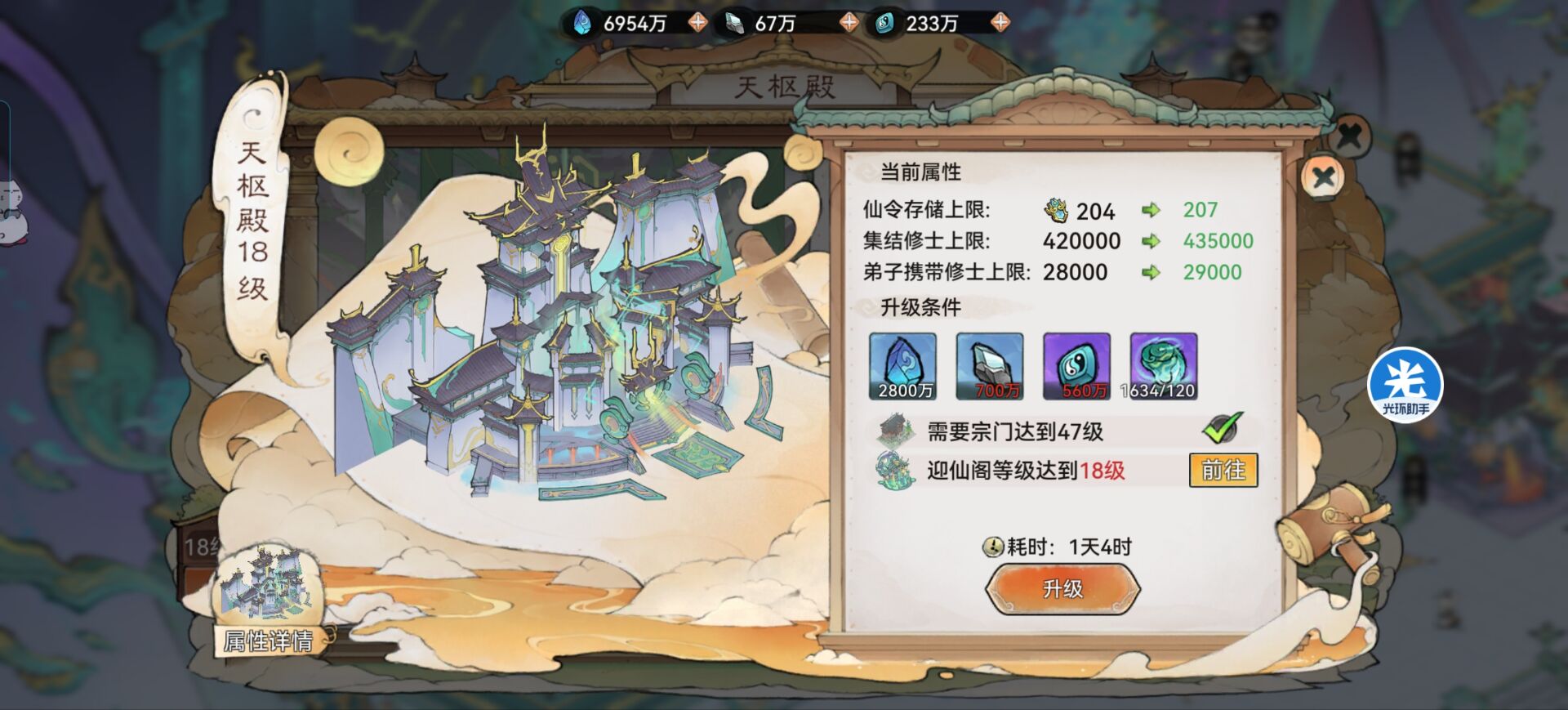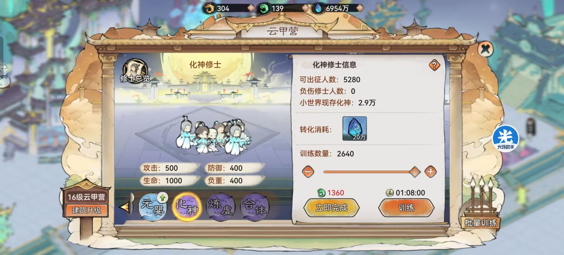 ③飞升仙界以后,因为我们的建筑升级需要超级大量的资源:玄铁、符纸、符石、灵木、灵石等等资源,这些资源可以说在没有训练到【合体修士】前,会一直长期伴随着缺乏的问题。