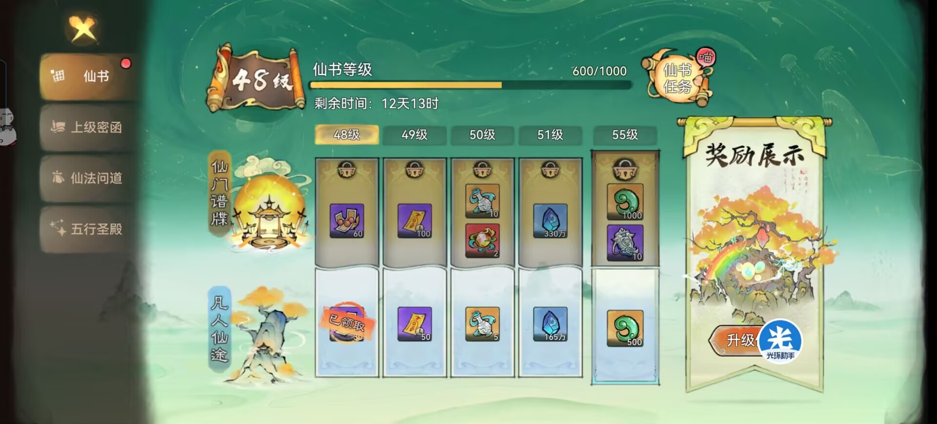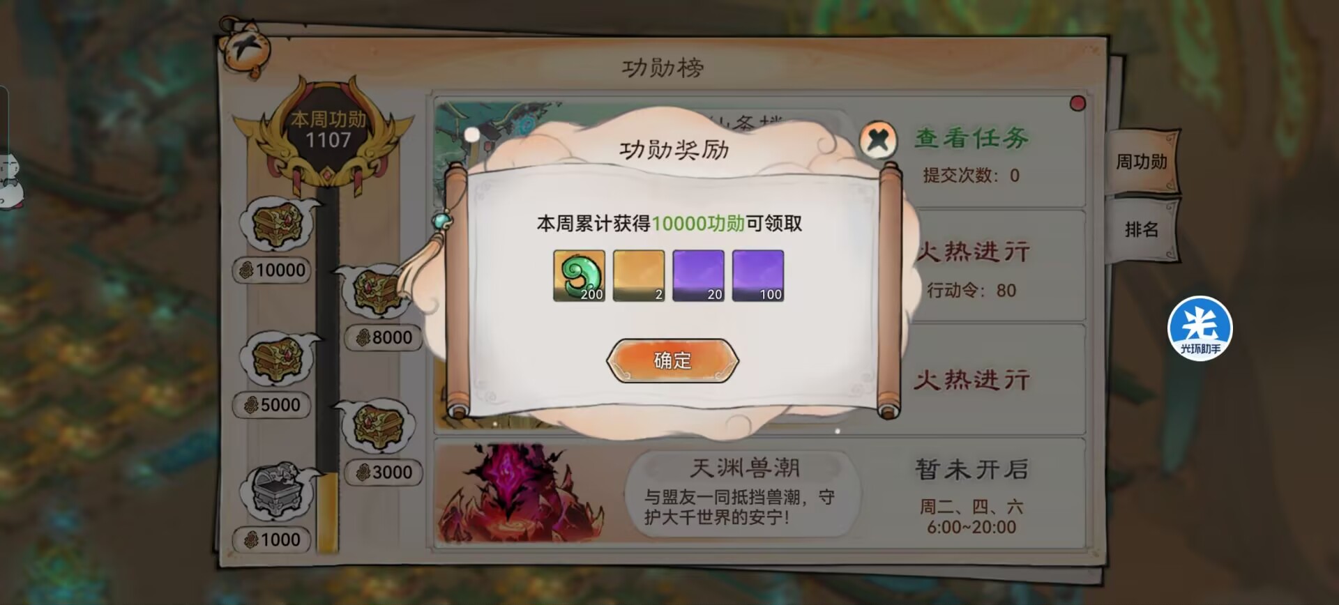 ③仙盟功勋榜:可以领150张加速符。