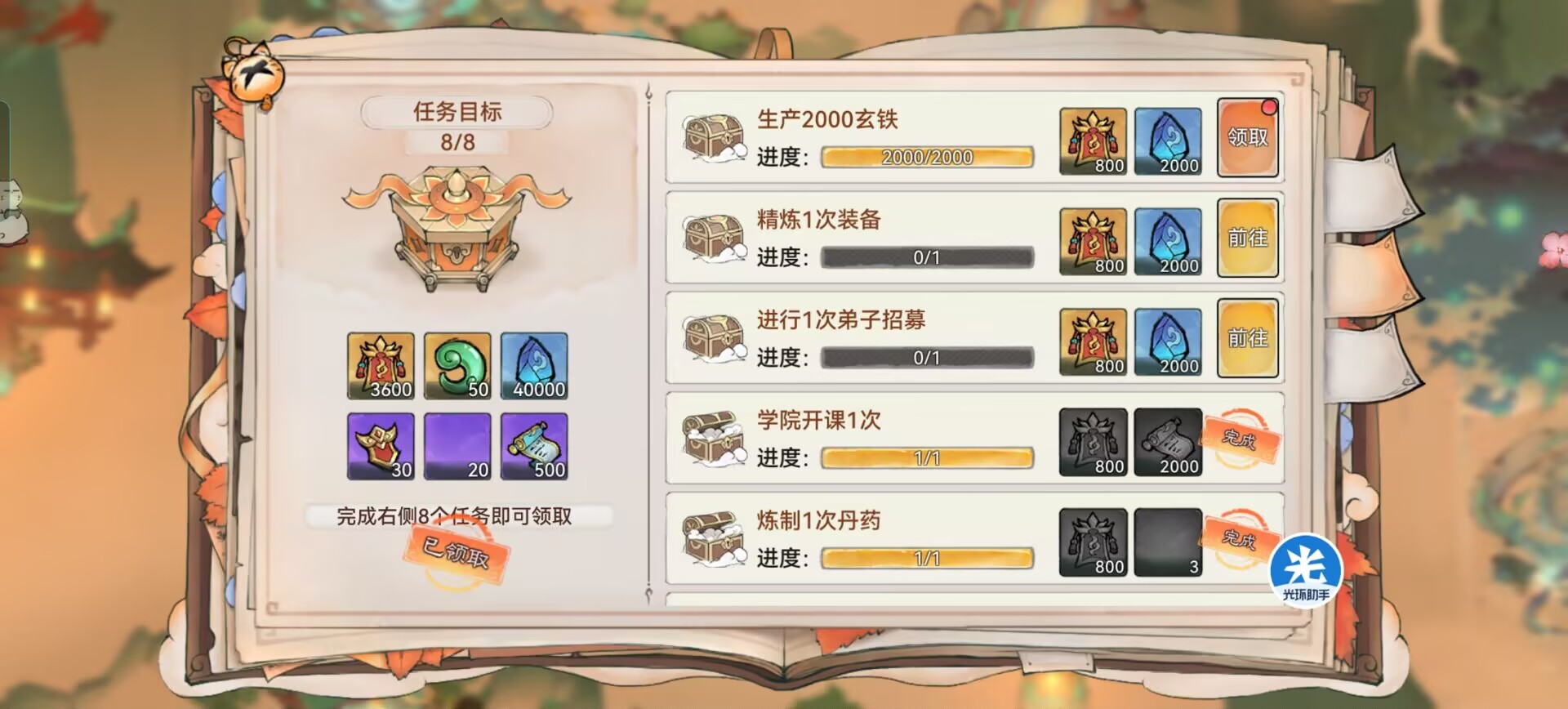 12:每周宗门送礼:一共可以获得1000张加速符
