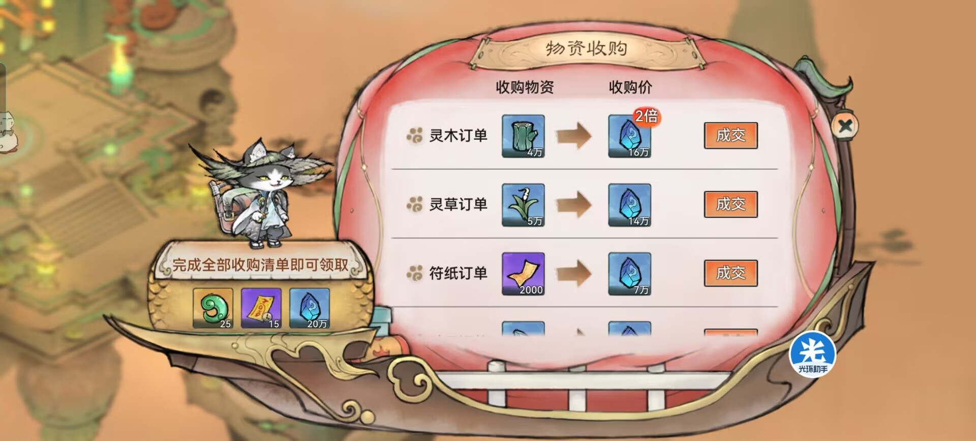 ⑥每天猫猫交易完成所有的订单任务可以获得15张加速符。
