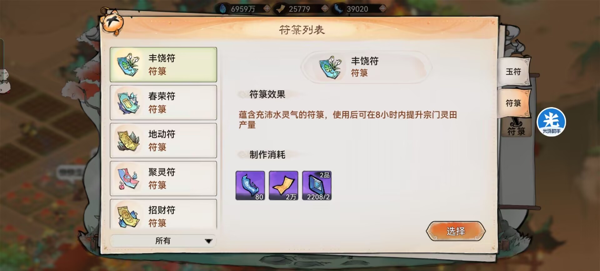 丰饶符:提升灵田产量。