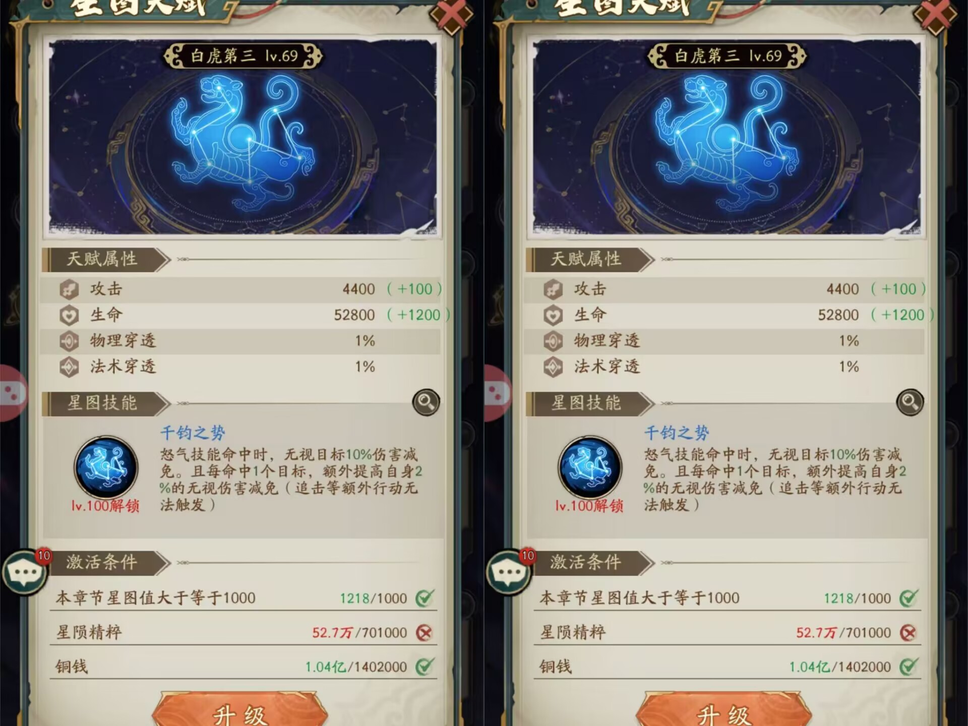 二:【四大星图】优先级激活和进阶顺序。激活也要结合你自己的阵容来的!比如肉队可能优先点防御型的星图。其实最终四个星图都是要到的,只是在资源不够的情况下,先点哪个对我们收益才是最大,这个就是问题的关键所在。