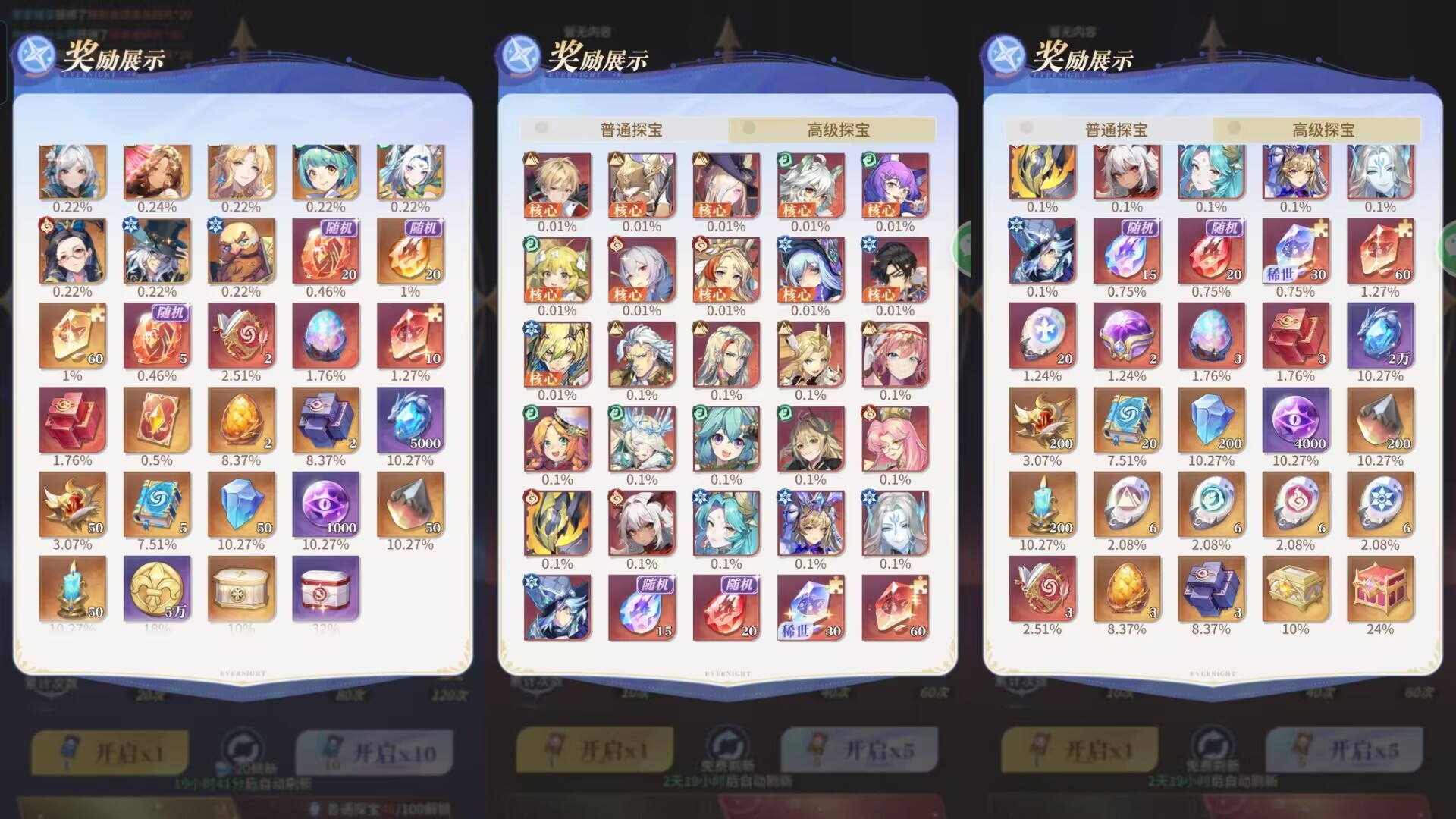 总之高级探宝卷是非常难获取的!想要获得核心角色奖励也是非常难的!只能长期囤囤囤!