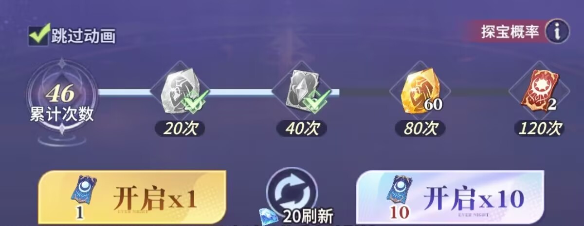 120抽=2个高级探宝卷。