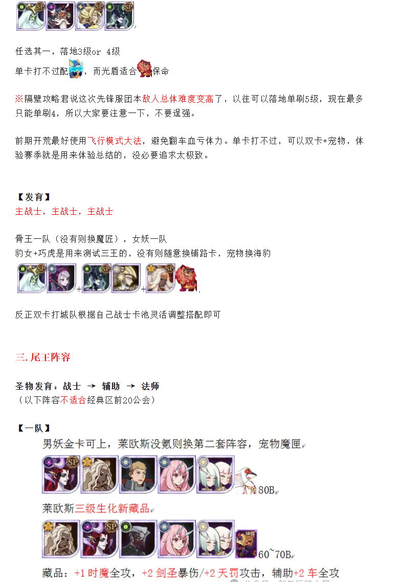 网上已经有流传一些尾王阵容,但我发现这些阵容仅仅是为了纯追求测试伤害,而忽略了团本实际三系发育逻辑,所以大家在选择阵容时需要多留个心眼。我的阵容也不是最优,欢迎大家优化提意见。