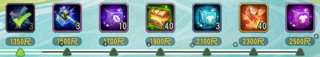 排名奖励依旧和羽毛活动一样,全服排名的情况下不打算收道具的话,只要达成2000尺即可。