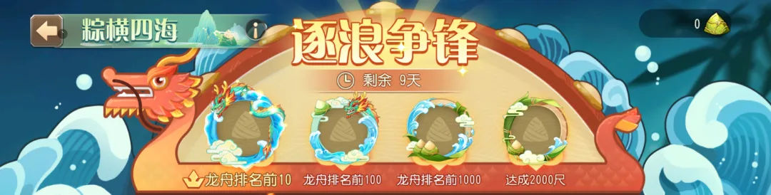 1、活动期间,队长可领取一艘专属龙舟,该龙舟随时间自动前行,队长亦可通过投喂【瑞粽】使其快速前进一段距离。