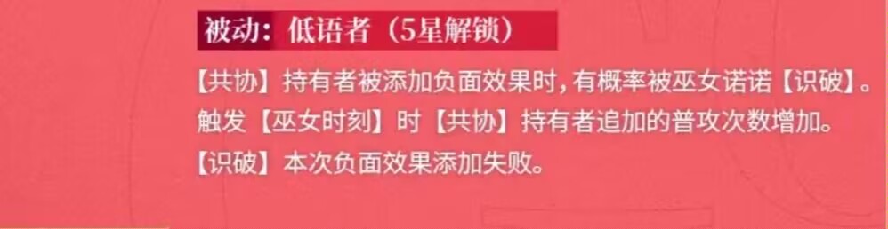 当诺诺5星如果共协目标被加负面,有40%识破直接让敌方的负面失去作用。