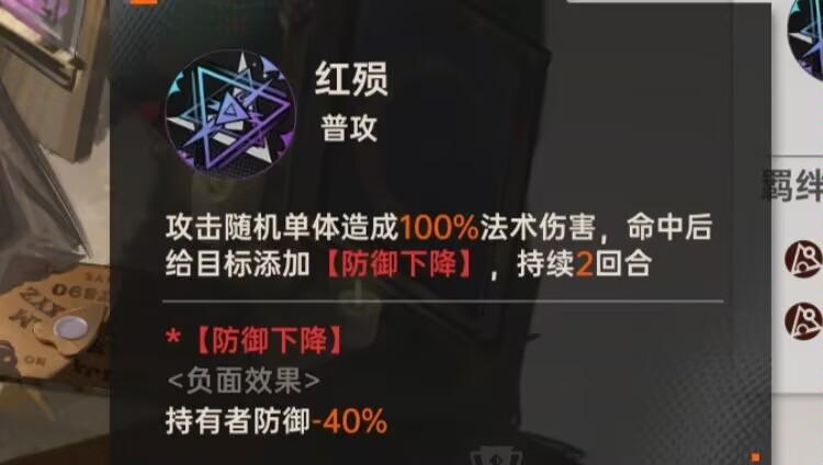 攻击随机单体造成100%法术伤害,同时给敌人降低40%防御。