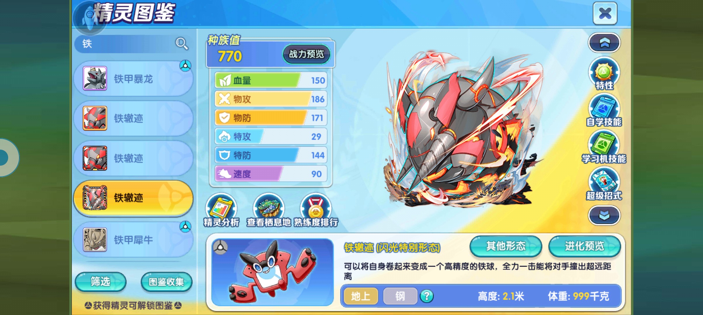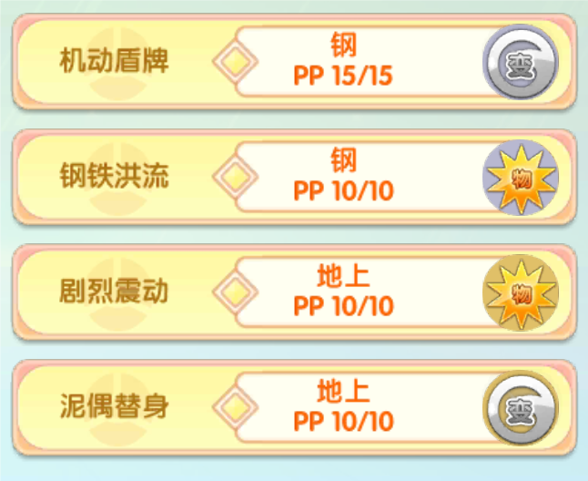 保留了原本现代种的地上属性,同时附加了钢属性,这两种属性搭配在一起抗性还是挺不错的,起码钢属性抗性我不必多说好到爆炸,但是偏偏配合地上属性,这会导致原本草属性和冰属性是0.5倍抵抗结果变成了一倍,那么剩下的弱点就包括火、地、格斗、水,就这四个弱点,其中同版本更新的骑士正好是火,虽然自身拥有地属性,可以反过来克制对方,但是别忘了对面速度比你快,对方拿先手就比谁的伤害高。