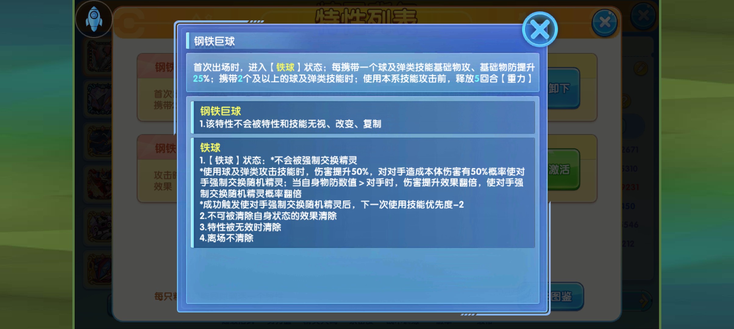 在讲解配置之前,首先要讲一下这两个专属技能,首先这两个专属技能全部是弹和球种类技能,那么也就是说刚好可以触发这头大象的特性机制,同时如果对方因为手动切换宠物,其他效果被迫切换精灵,还可以让自身的物攻和特防增加说白了,全部就是配合该特性效果使用的,因为特性效果是可以让对方切换走人的,然后刚好使用这两个技能,其中一个将对方甩下去就可以互相触发各自的效果,说白了,这个精灵如果强化起来,对面是1点辙都没有,对面劝退没有任何的办法,因为自身无法被劝退,如果对方想用黑雾这种状态取消自身的强化的话,也不怕因为自身的技能基础伤害是很高的,而且还有特性的加伤。