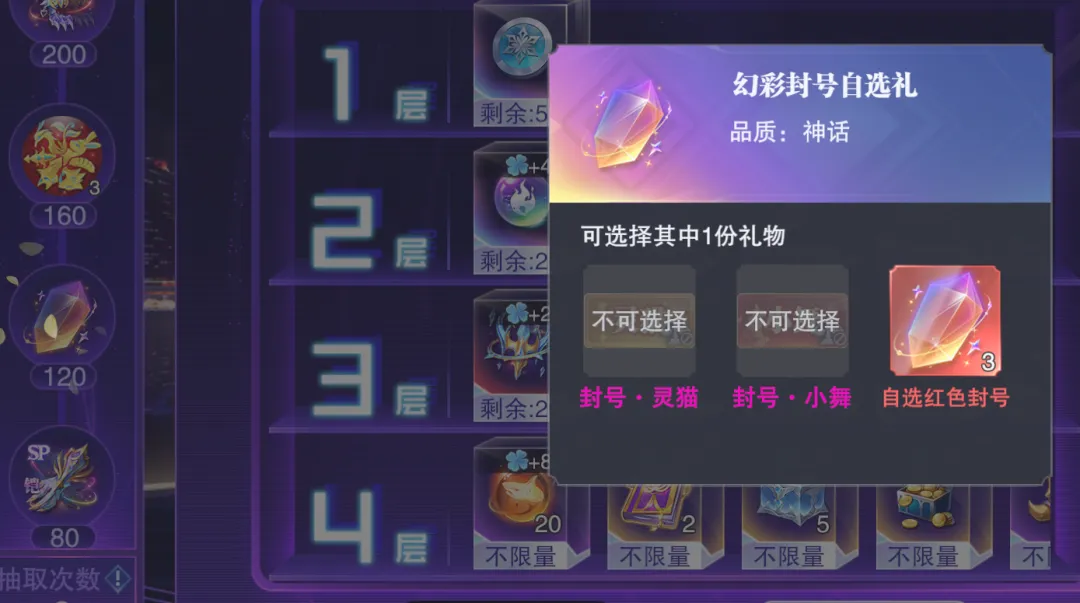 - 左侧120抽累抽赠送的双称号自选获取成本为:8800钻