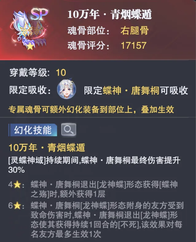 - 右侧25抽保底的SP唐舞桐右腿进化魂骨获取成本约为:9600钻石+1714元