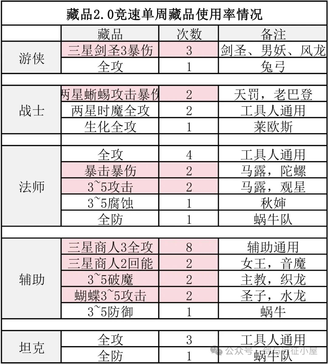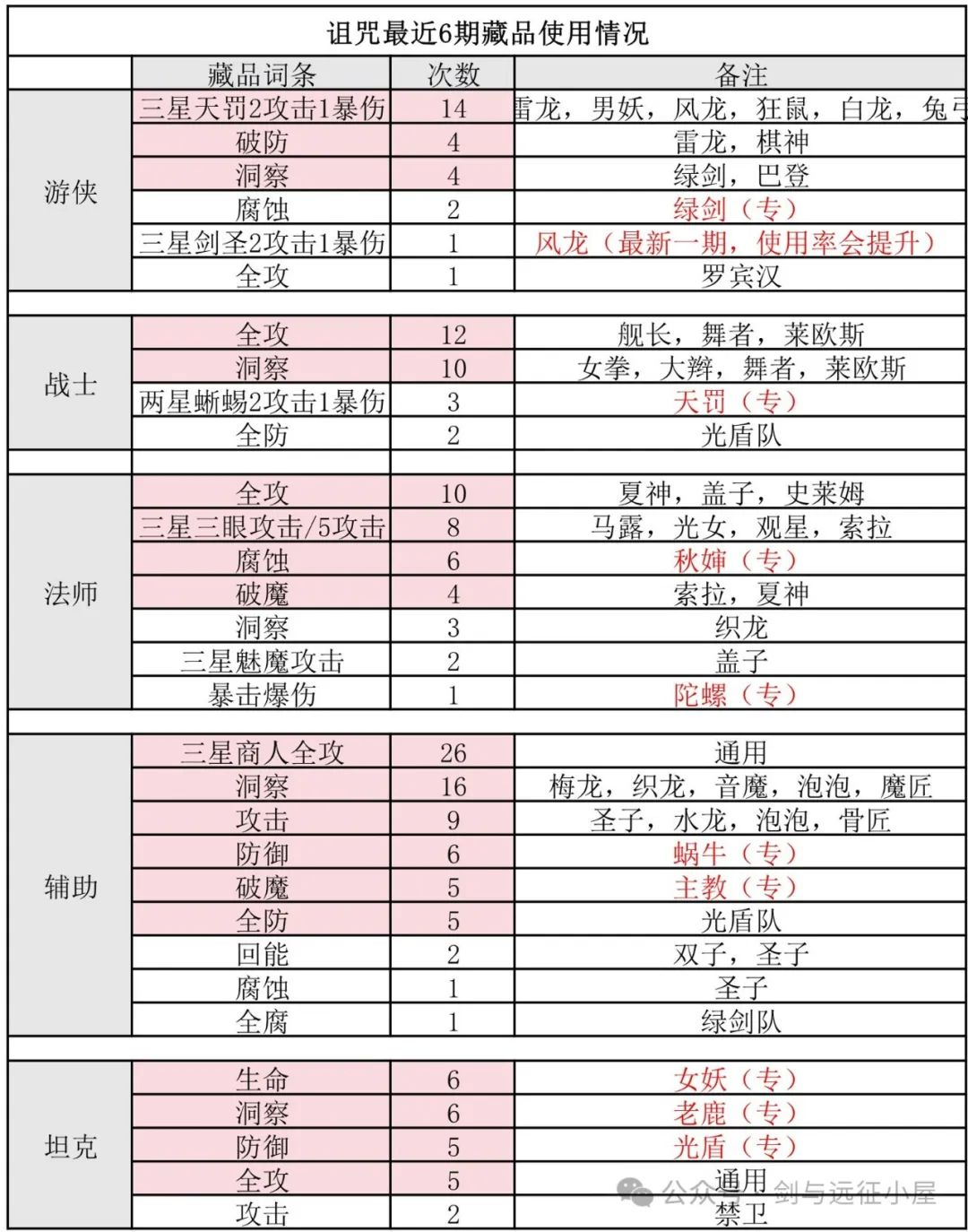 限时灵液怎么用性价比最高?藏品最新使用率数据出炉剑与远征 - 攻略星发布于 05-12关注母亲节兑换码经典服:mp8mt8q5fp组队服:mpv3vuctf6一. 竞速藏品就业情况(最新一周) ※竞速作业会有多套阵容情况,以上数据仅供参考。二. 诅咒藏品就业情况(最近六周) 三. 总结1. 新藏品刚上线首周,只有剑圣藏品改变了游侠藏品的使用情况,天罚藏品从竞速中下岗,但诅咒中天罚藏品仍是主流,后续需要进一步观察使用率的变化。2. 竞速Boss暴击耐性比诅咒低,战斗追求短时间爆发,因此竞速主C堆暴伤收益最高。3. 诅咒敌人随着战斗时间的推移,暴伤耐性会提高,因此诅咒需要攻击+暴伤组合收益才会最大化。4. 从使用率看,高等级的人权藏品有 1)三星剑圣3暴伤(竞速) 2)三星剑圣2攻击1暴伤(诅咒) 3)两星蜥蜴2~3攻击1暴伤 4)三星三眼3攻击 5)三星商人3全攻 6)两星时魔2~3洞察 其他使用率高的藏品对等级要求不高,红词条够多即为合格。转载自:剑与远征小屋