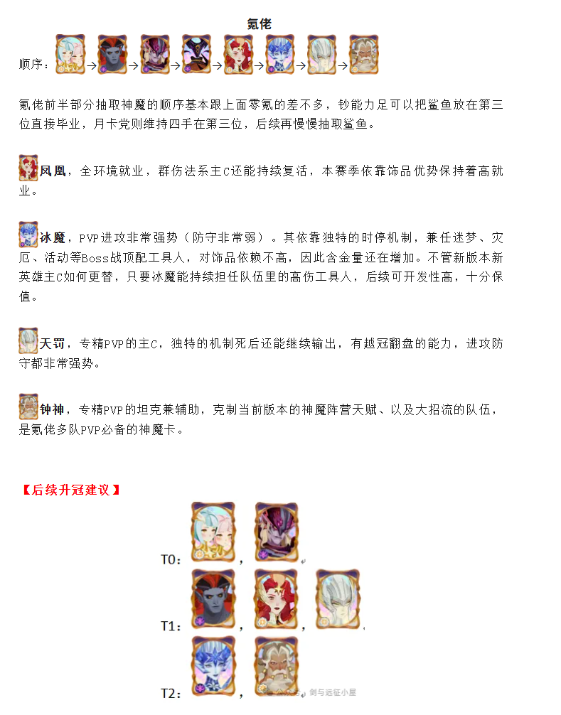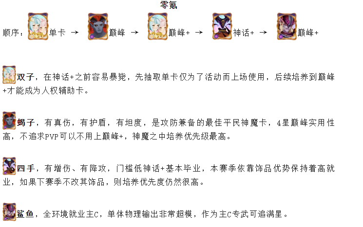 最后补充一下,10天后的火龙新赛季,首位上线的新英雄大概率是恶魔,因此上面的培养优先度肯定会有所变化,但对于零氪微氪来说,双子、蝎子、四手都是可以放心优先培养的平民神魔卡,不用担心被新英雄背刺。