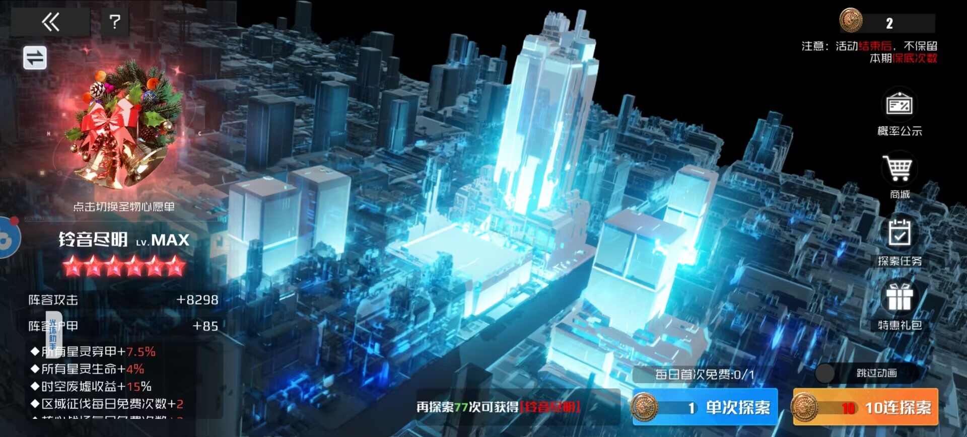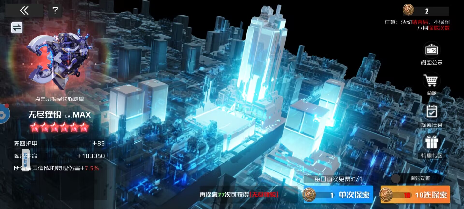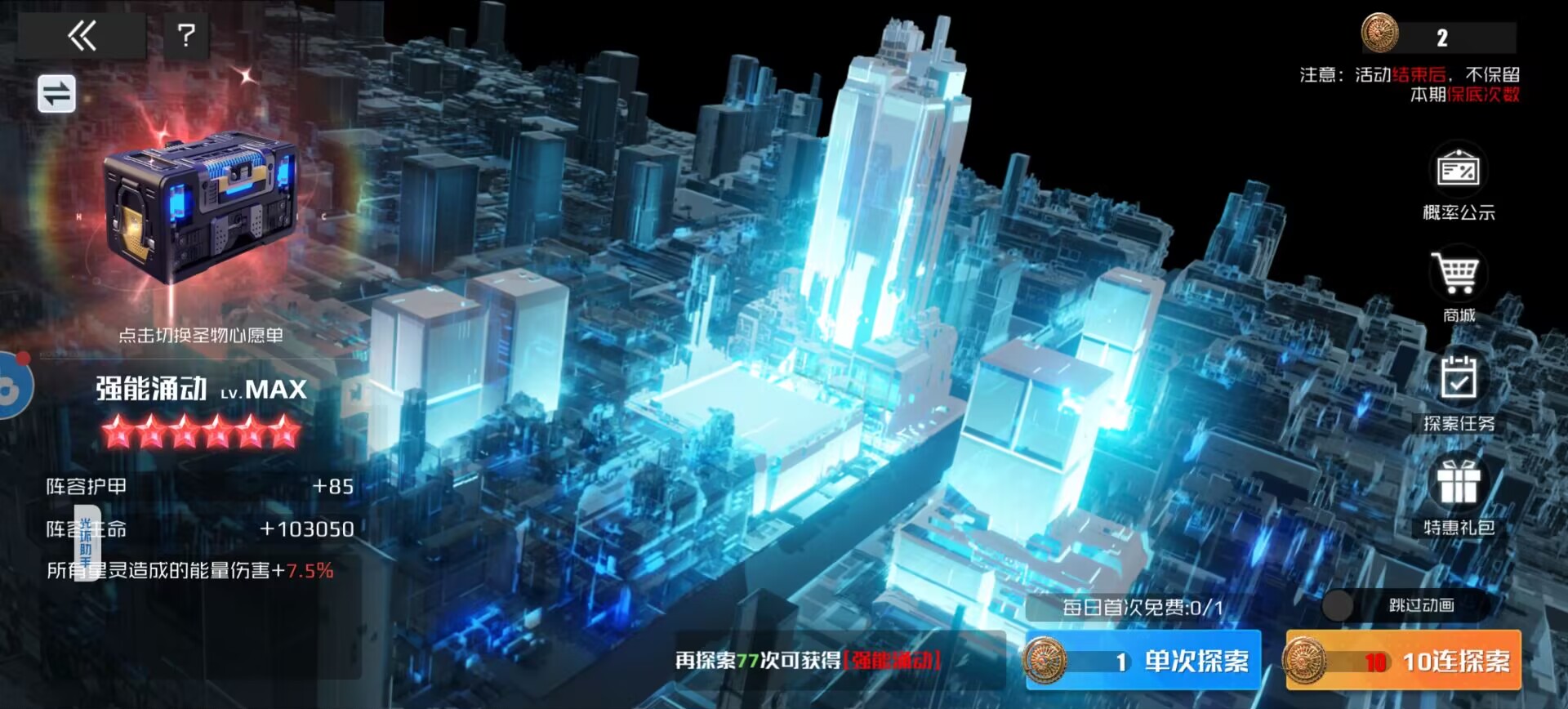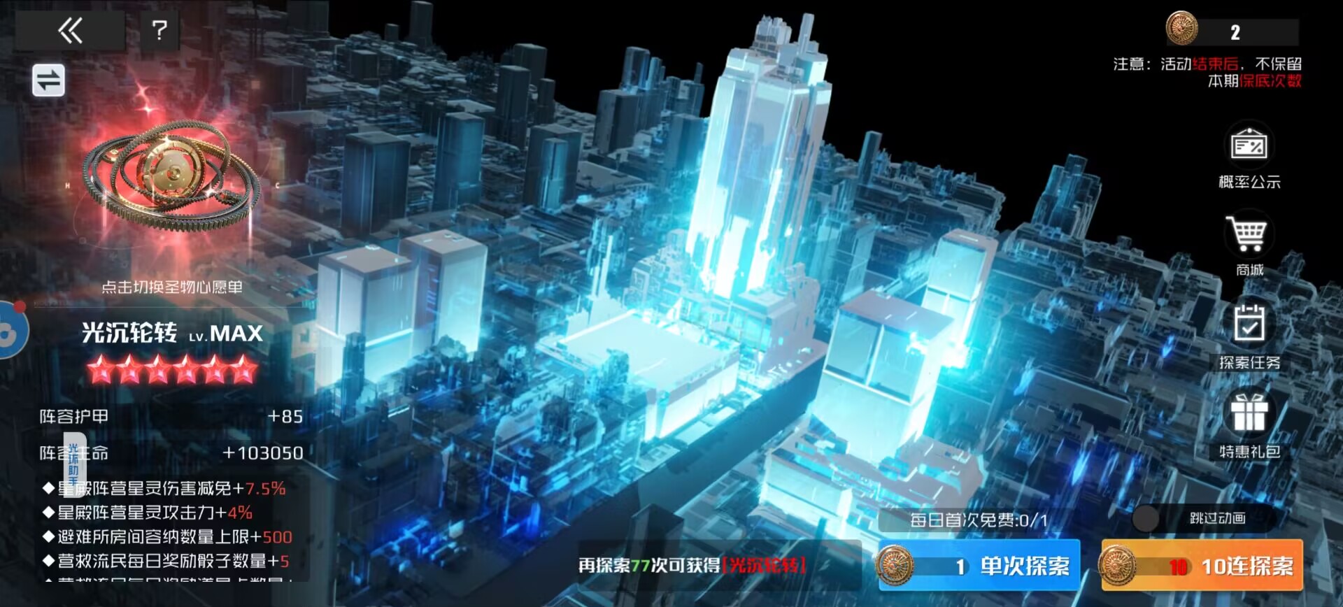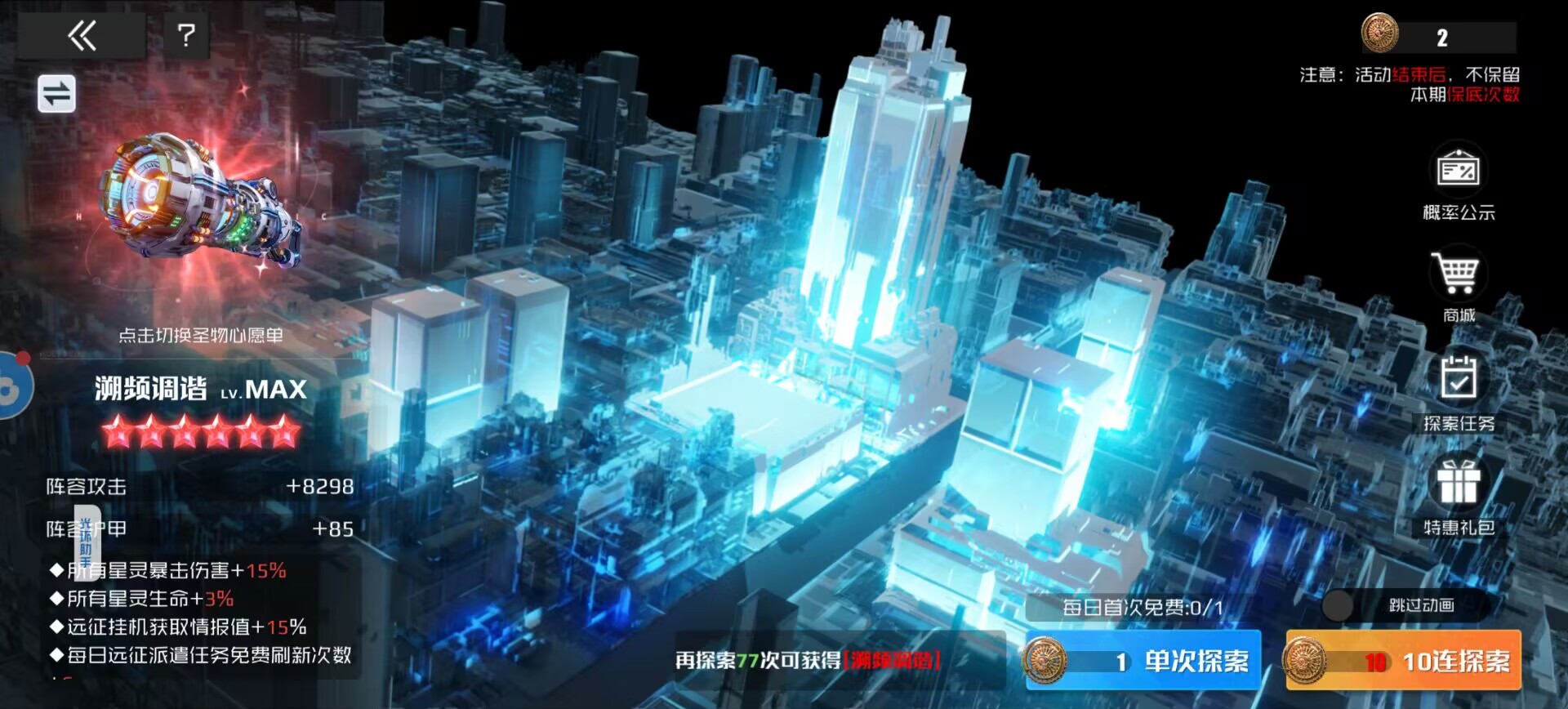 作用:提升星灵暴击伤害和生命,同时提升远征情报值获取和刷新次数。