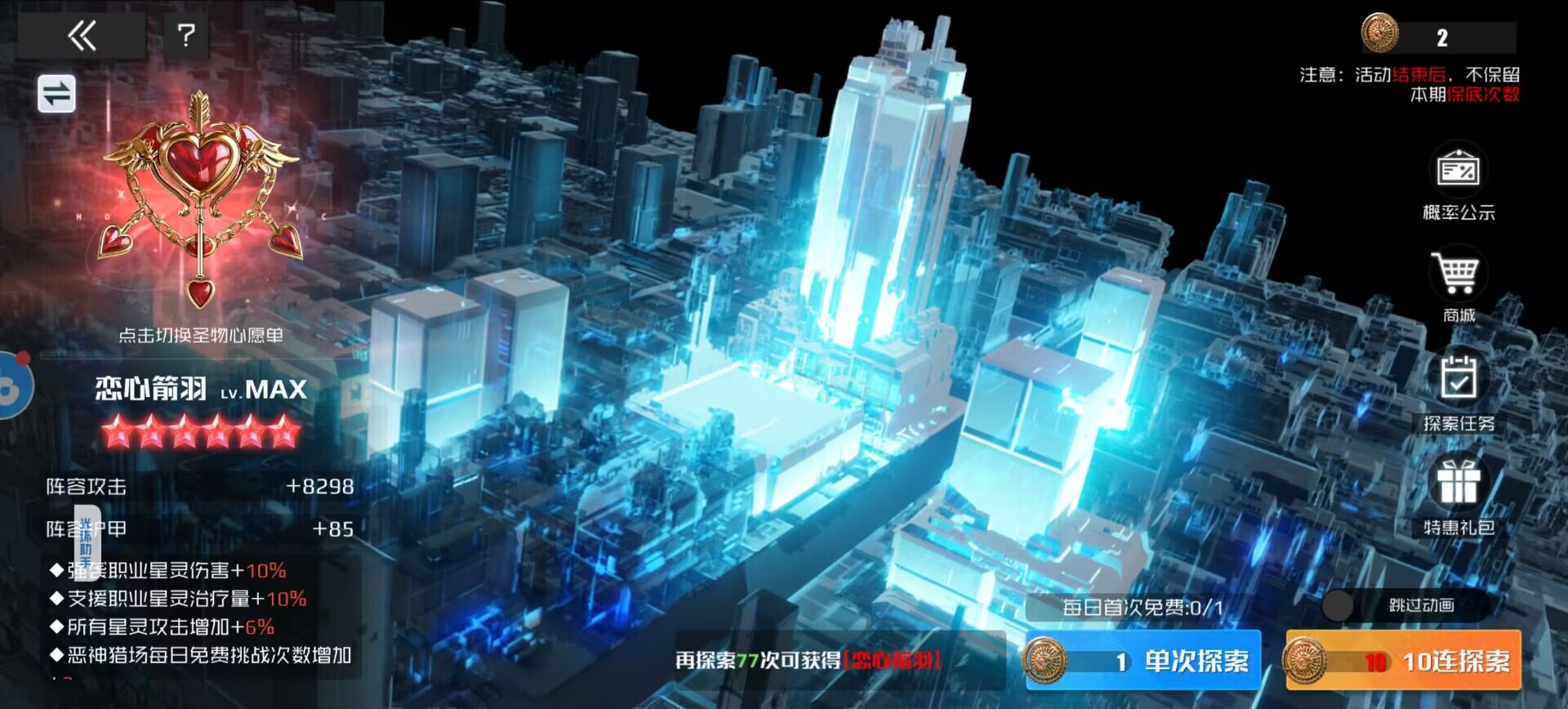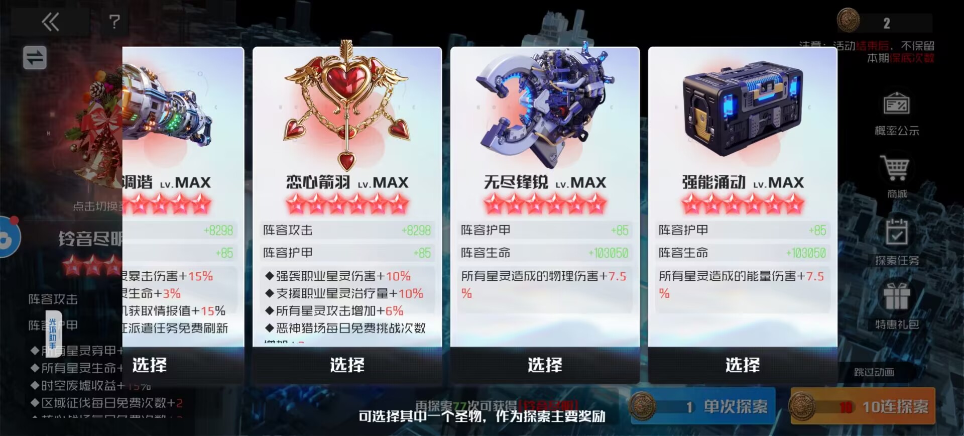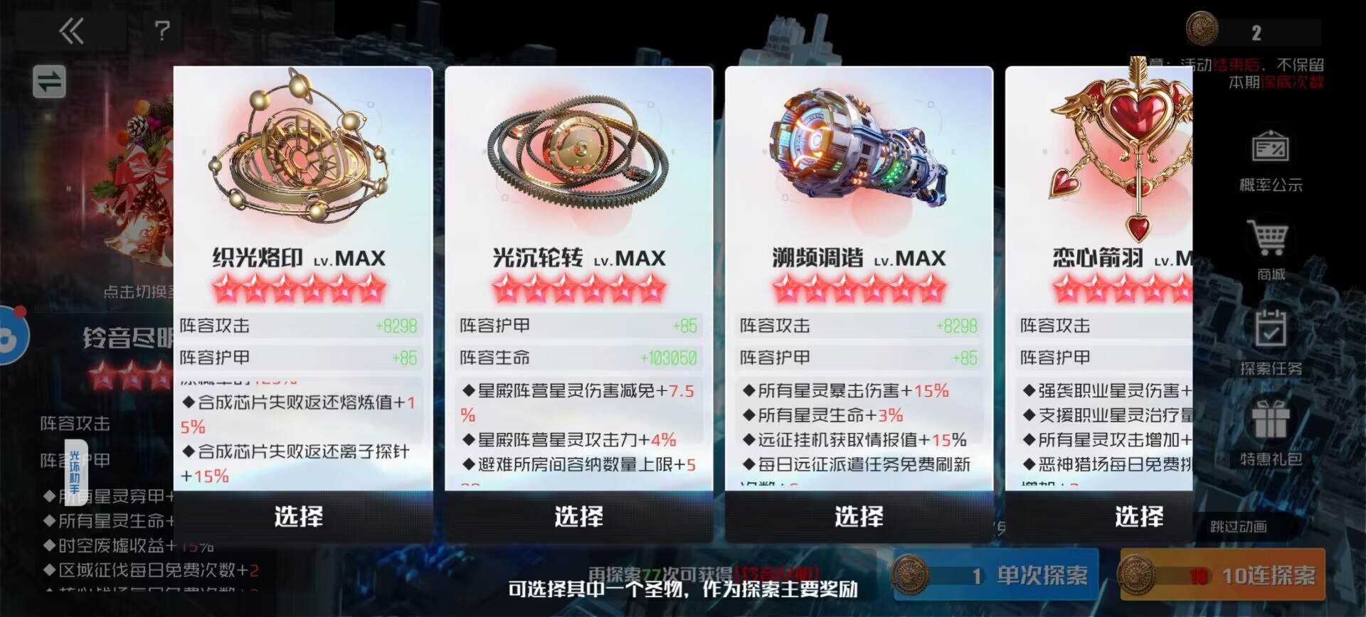然后抽恋心箭羽和铃音尽明,剩下的圣物根据自己的阵容来决定抽哪个。