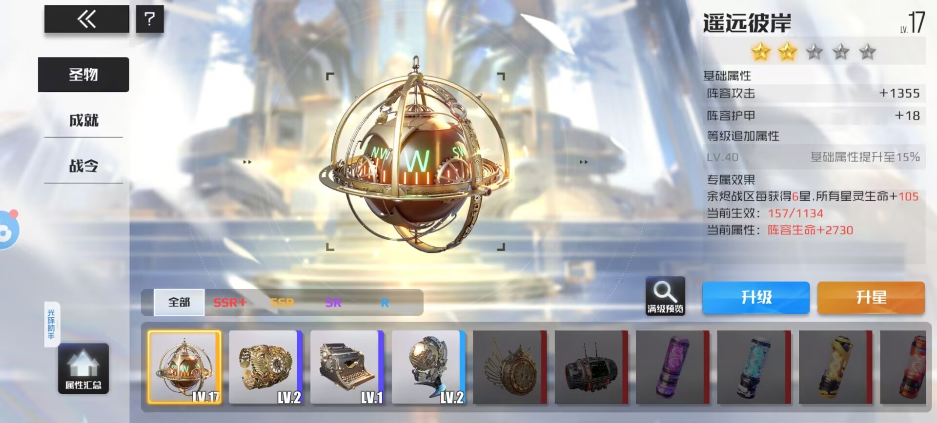 圣物的作用就是:提升星灵属性和一些玩法的收益。