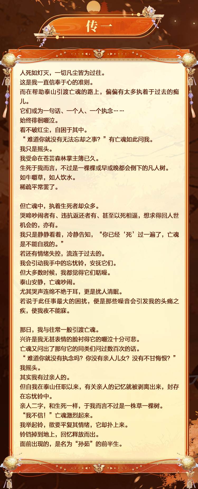 ■ “今儿个什么时辰了?我该去忘川听故事了。”