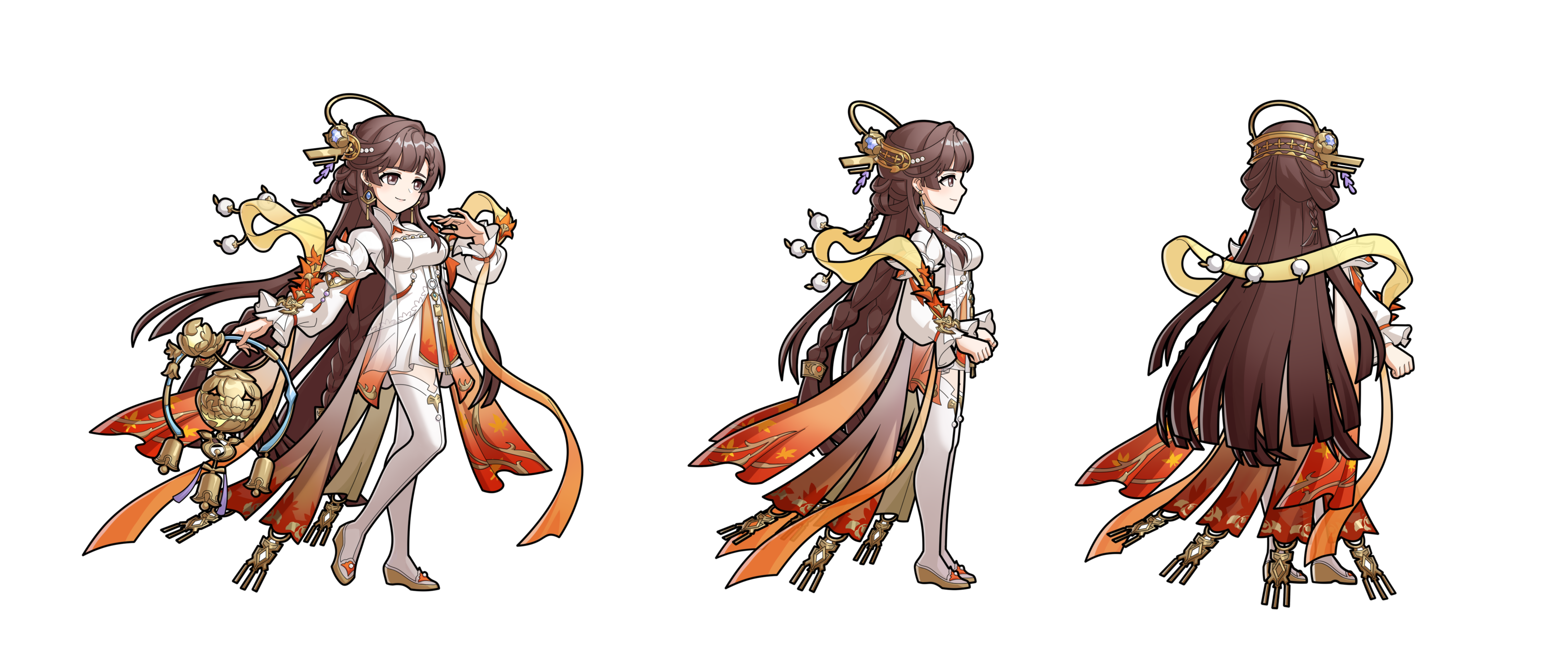 我们希望通过怒攻,让玩家感受到孙茹“超脱生死,玄妙莫测”的战斗风格。她的治疗并非庄严肃穆的祷祝,而更像一场即兴的舞蹈,在轻快的铃音中,悄然抚平所有伤痛。技能中先是俏皮地单腿独立,指尖轻抵铃铛,眉眼间闪过一丝狡黠的笑意。随后,她高举忘忧铃,铃音如涟漪般荡漾开来,仿佛连时间都随之放缓。最后轻盈跃起,在空中翩然转身,万千灵光如星雨洒落,温柔地治愈着每一位同伴。