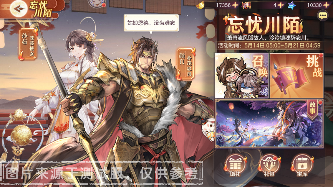 萧萧流风赠故人,泠泠镇魂辞忘川。——全新武将孙茹、颜良于2025年5月14日05:00正式登场,首发活动“忘忧川陌”同步开启!