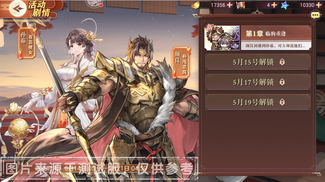 活动期间,玩家可参与到新武将,孙茹、颜良的活动剧情中。活动第1天、第2天、第4天、第6天分别开启一章活动剧情。参与剧情活动,与剧情人物对话后即可获得元宝、孙茹碎片、颜良碎片等奖励。