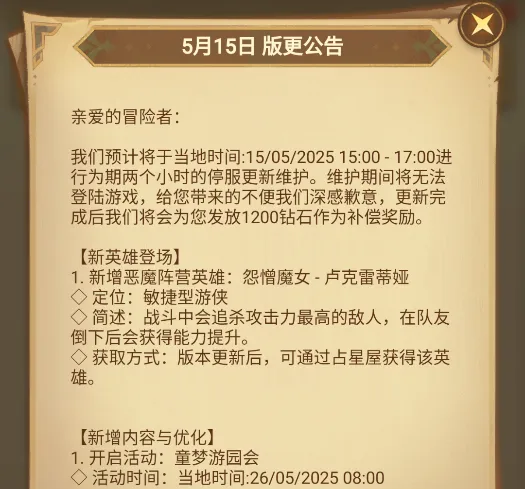 本次停服维护更新内容仅适用于《剑与远征》先锋服,版本实际更新内容请以正式服上线后为准。