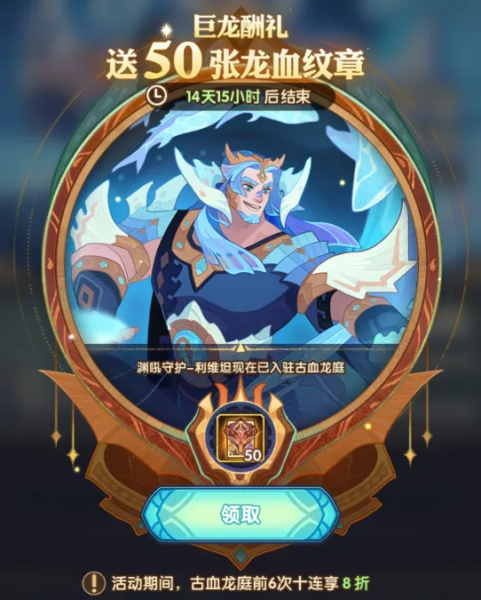 ◇活动简述:活动期间达到16-1的冒险者可以免费领取50张龙血纹章,同时古龙血庭中将开启限时优惠,前6次十连抽将享有8折优惠。